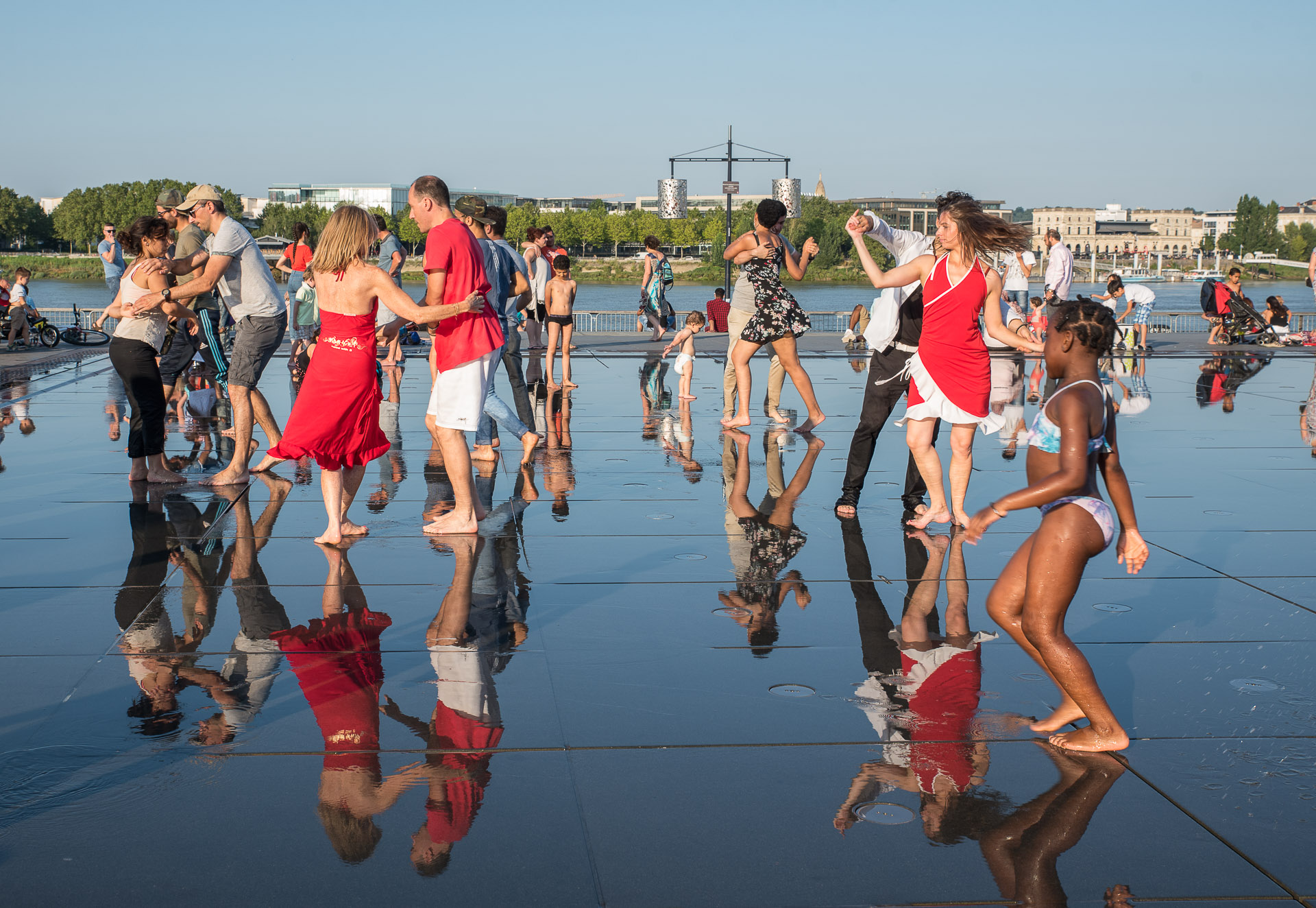Los bordeleses se reúnen en el Espejo de Agua para bailar, jugar y, en suma, disfrutar.