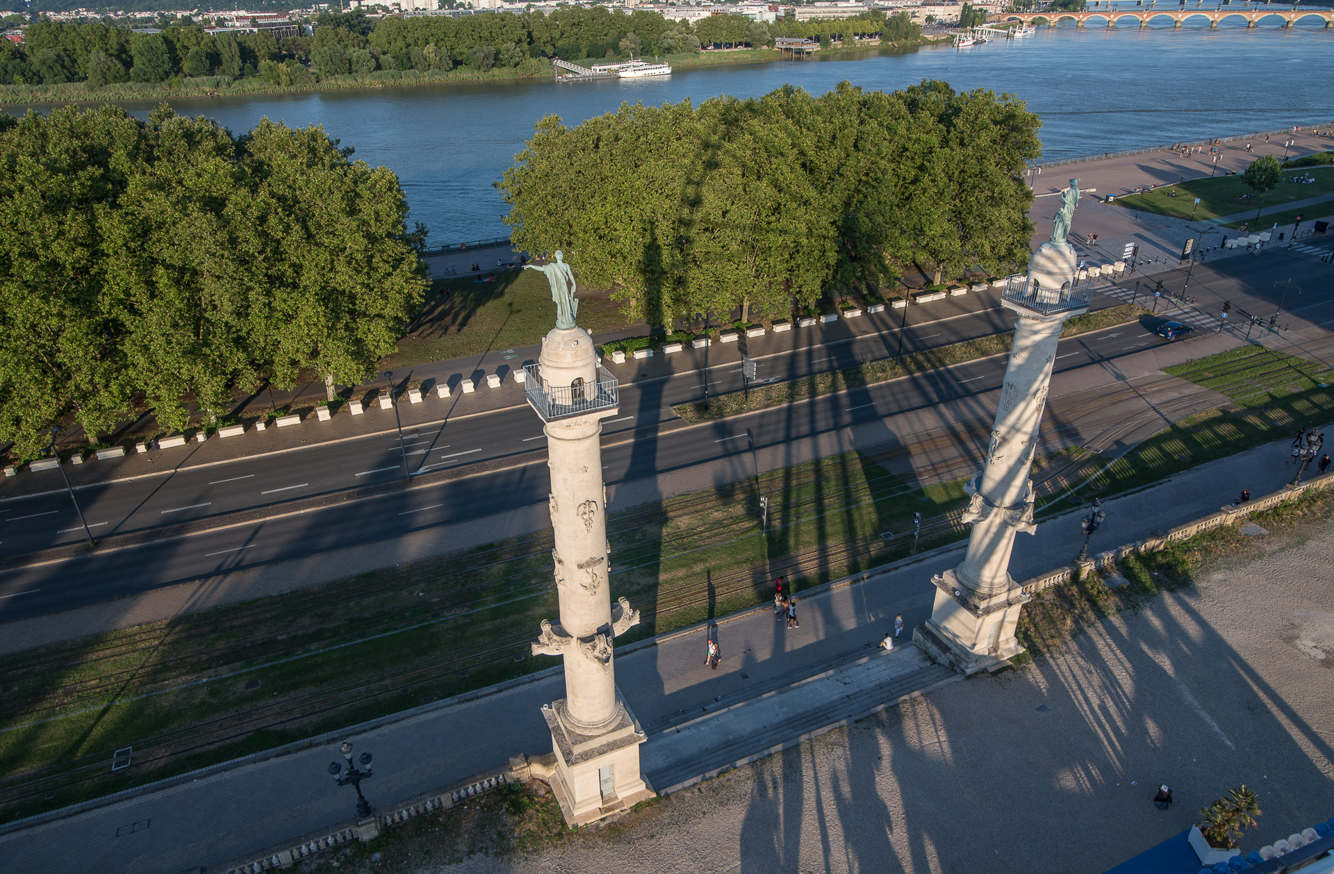 El río Garona y las columnas de la explanada de Quincoces, la mayor plaza de Burdeos y también de Francia.