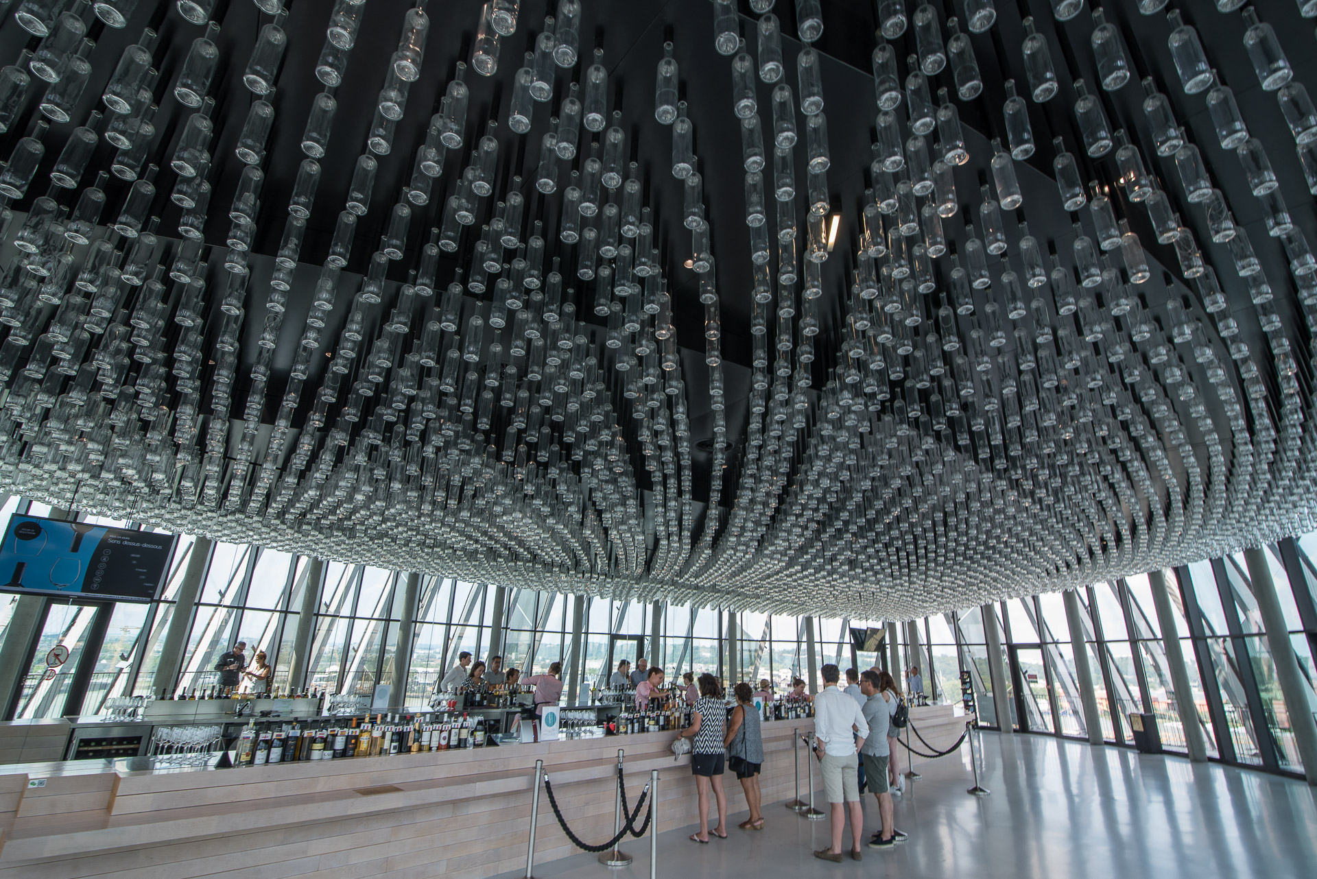 El bar en el que termina la visita a la Ciudad del Vino degustando una copa y disfrutando de las vistas sobre casi todo Burdeos.
