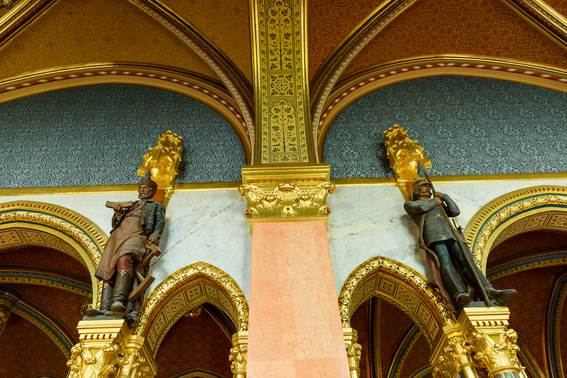 Los detalles ornamentales son muy variados y cuidados. Muchos recuerdan antiguos reyes húngaros o héroes de la antigüedad.