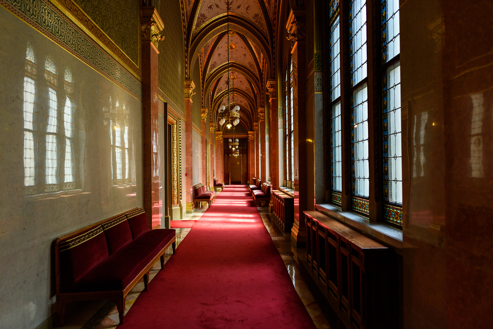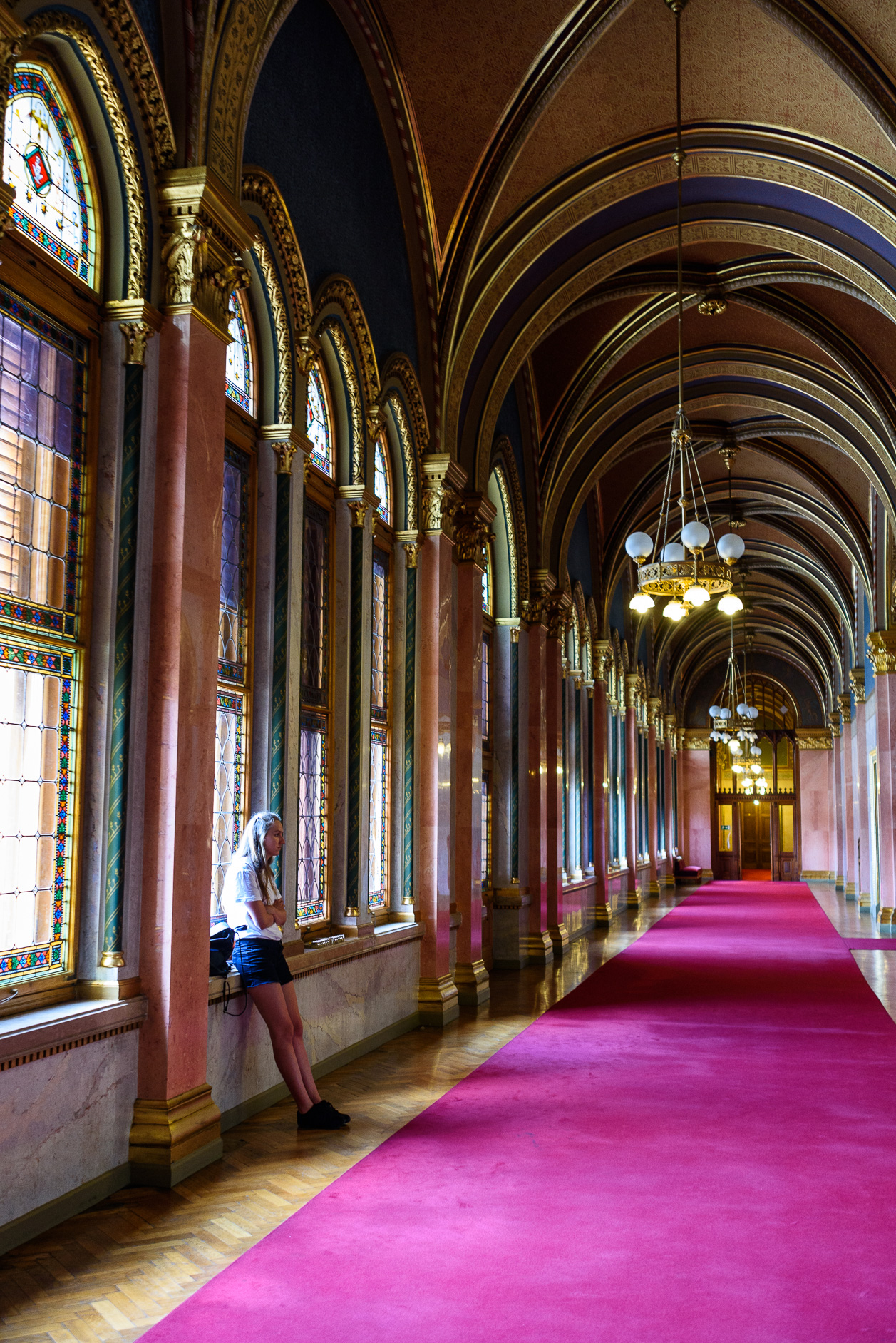 Otro de los pasillos del espectacular parlamento de Budapest. Para los que estén pensando en visitar el edificio, la visita al Parlamento de Budapest dura unos 45 minutos, y se limita a unas cuantas salas y galerías.