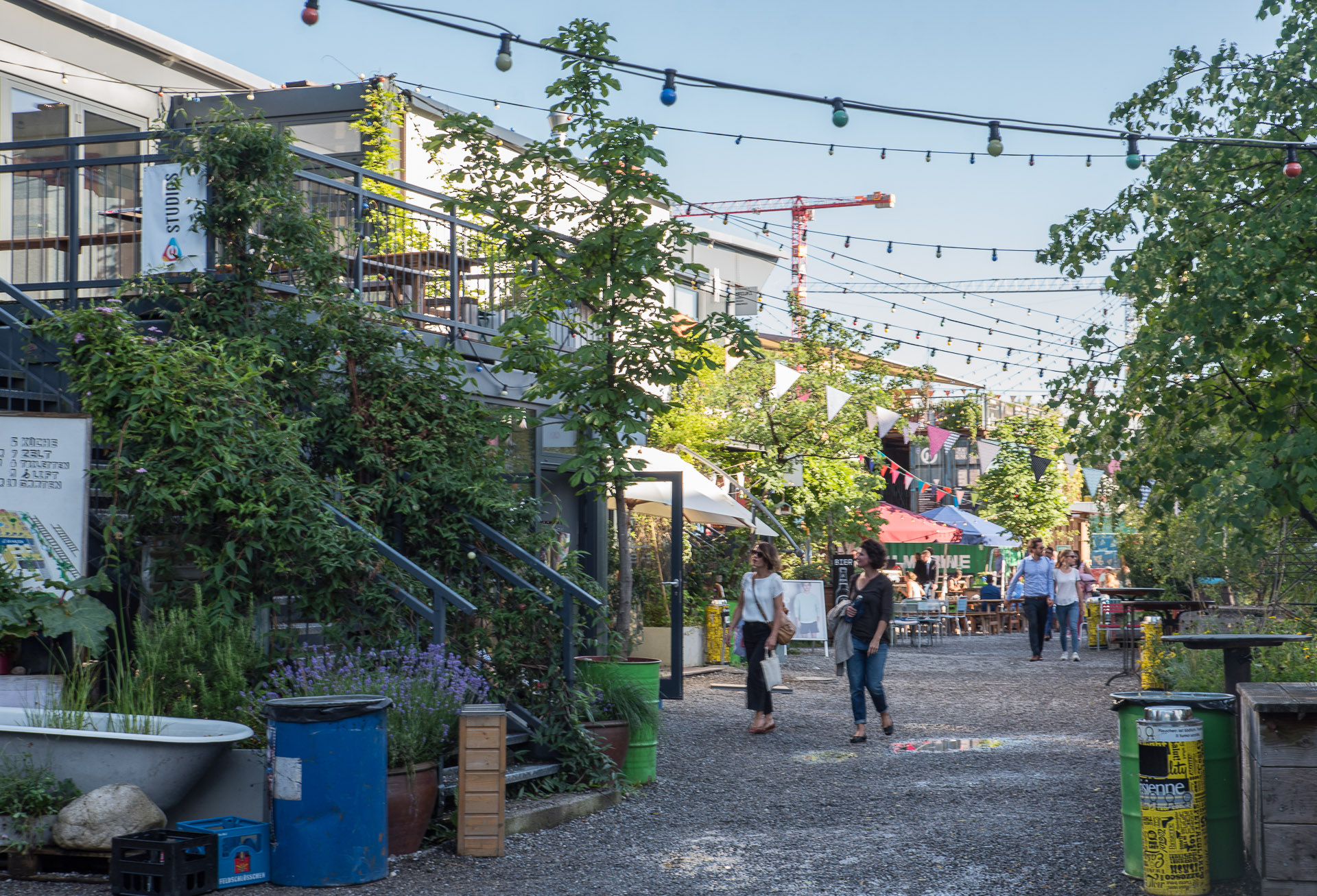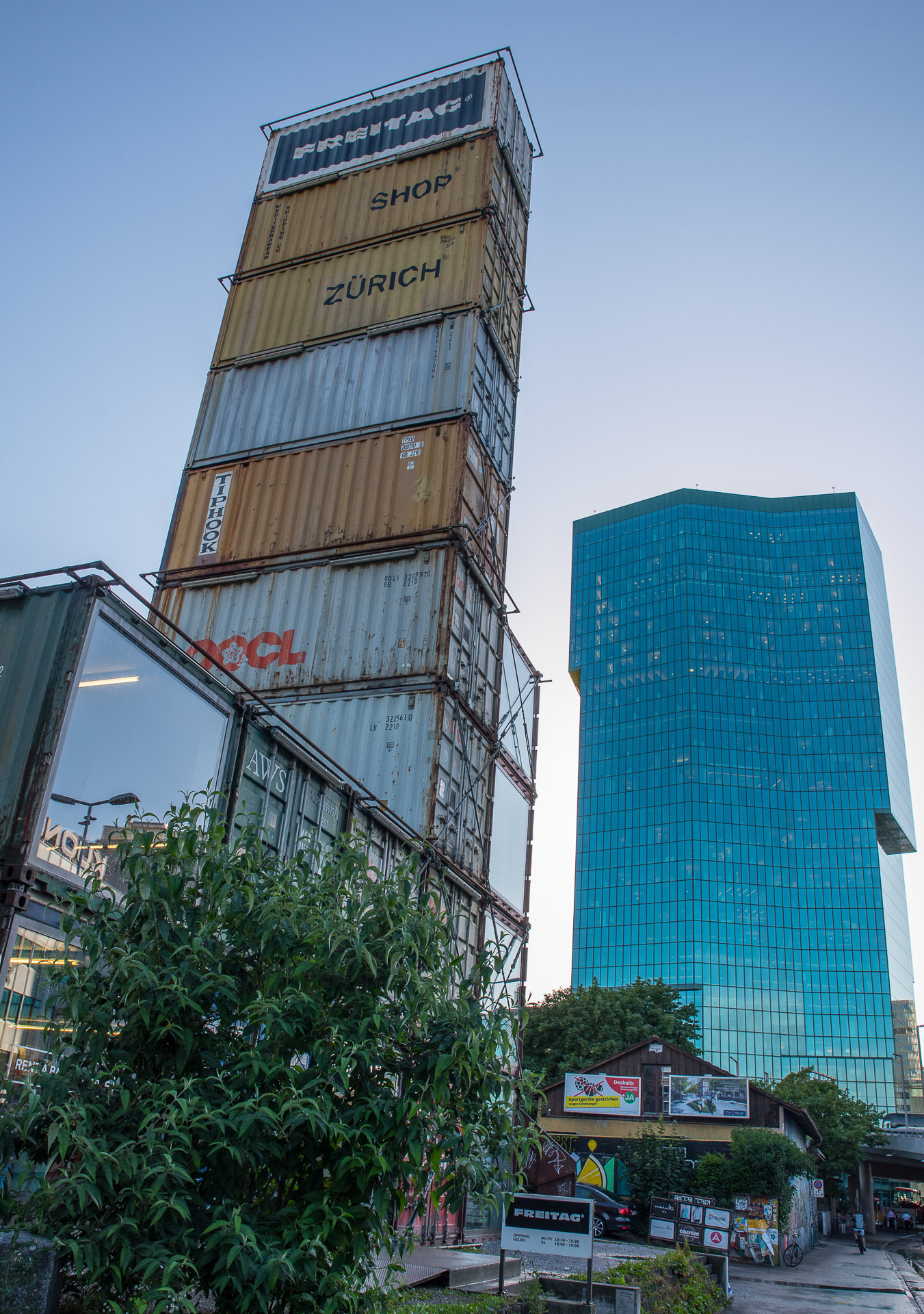 La tienda de Freitag y la Prime Tower, un buen ejemplo de los contrastes en Zúrich West.