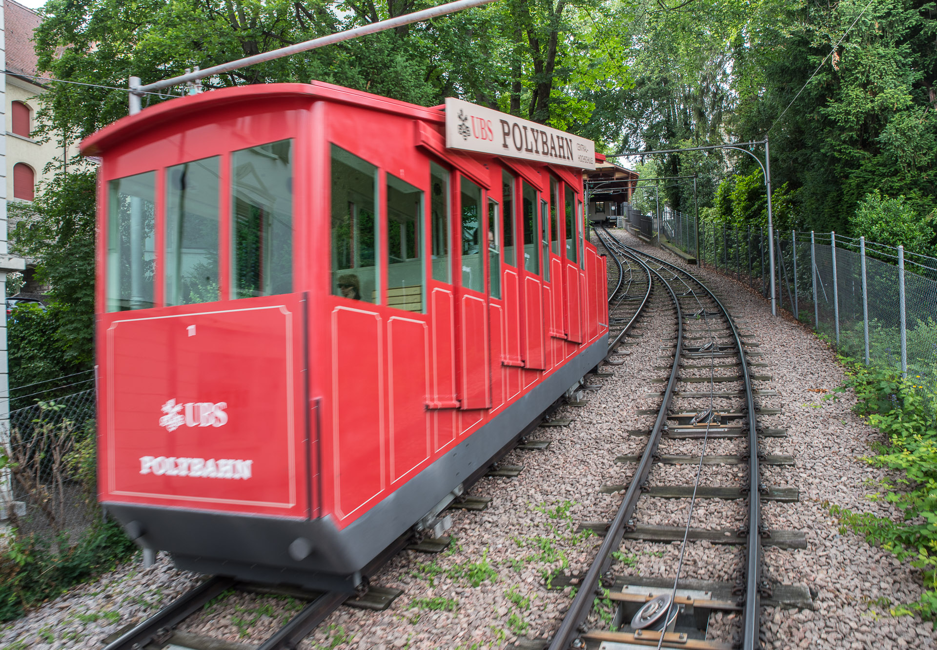 El Polybahn, el funicular que lleva de la parte baja de la ciudad a la alta, donde está la universidad.
