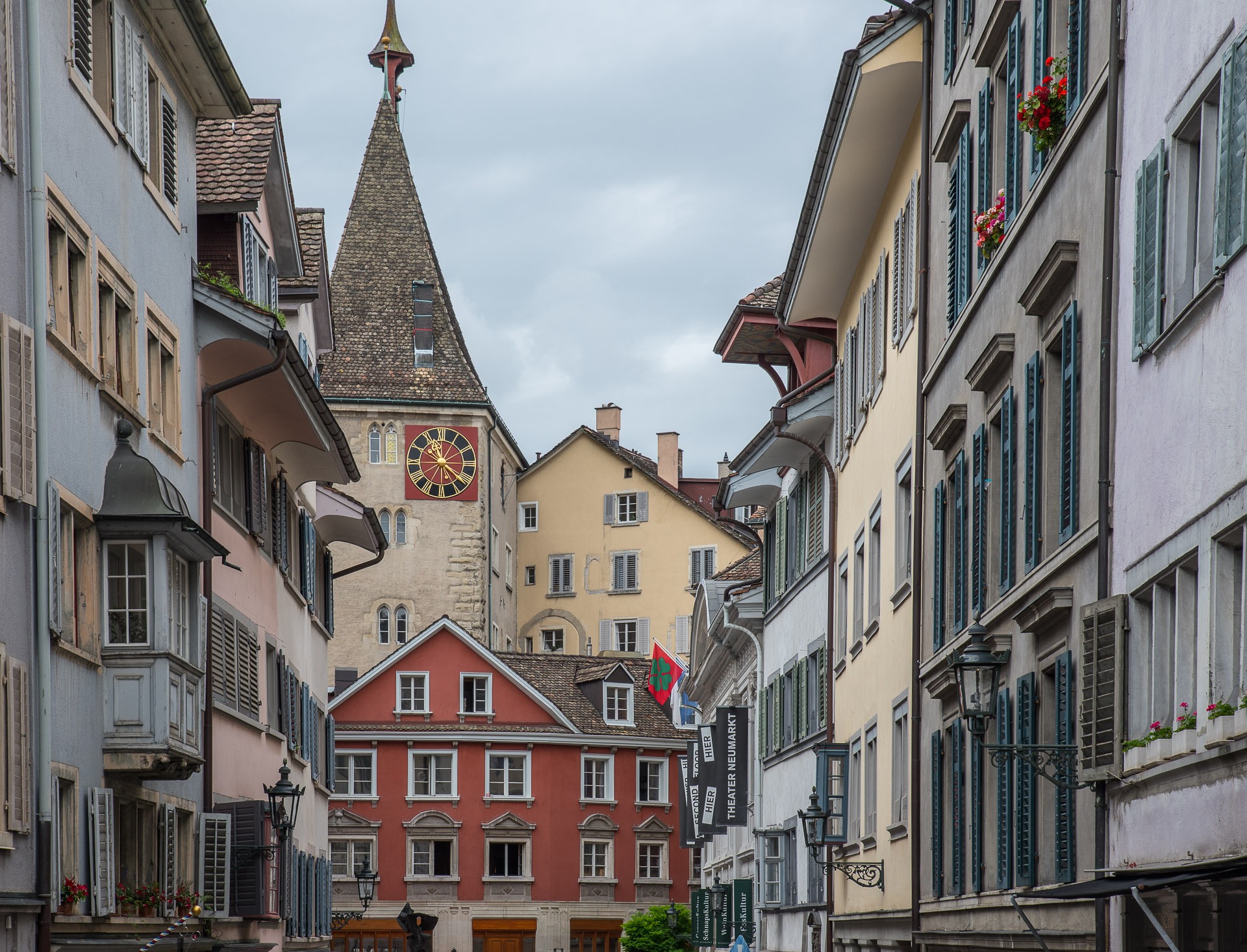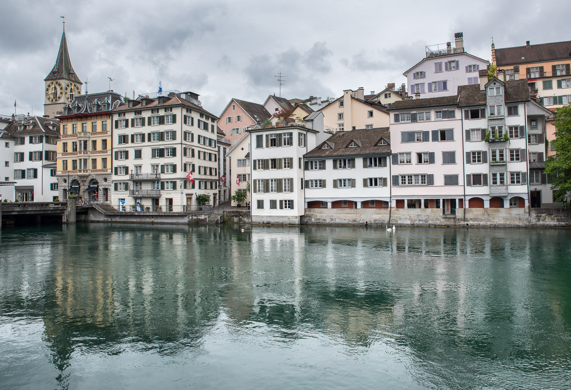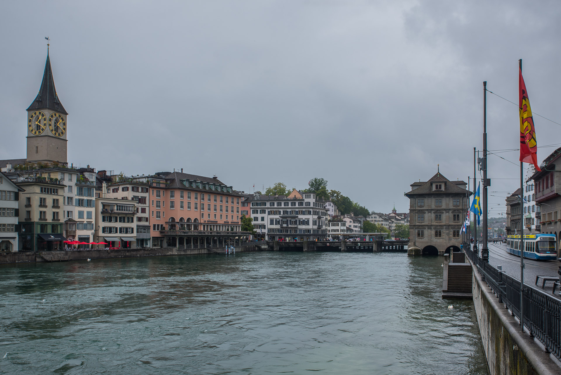 La zona del río cercana a su desembocadura en el lago Zúrich, con las torres de la Grossmunster como icono más visible.