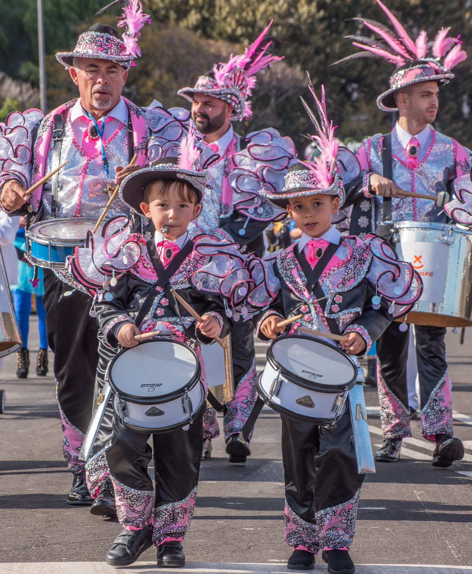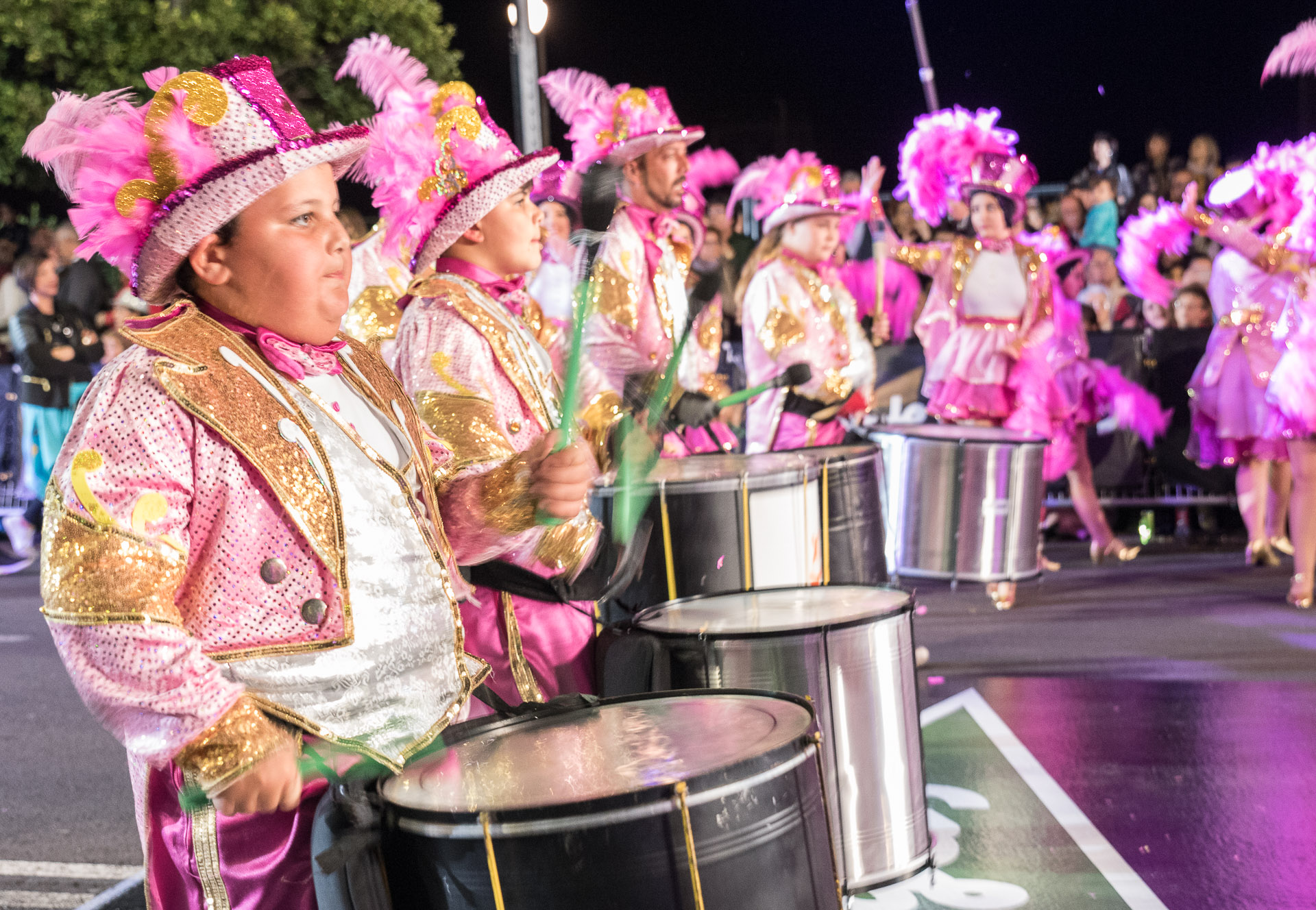 Las comparsas y su desfile al son de contundentes grupos de percusión son la parte del carnaval de Tenerife más inspirada en Brasil.