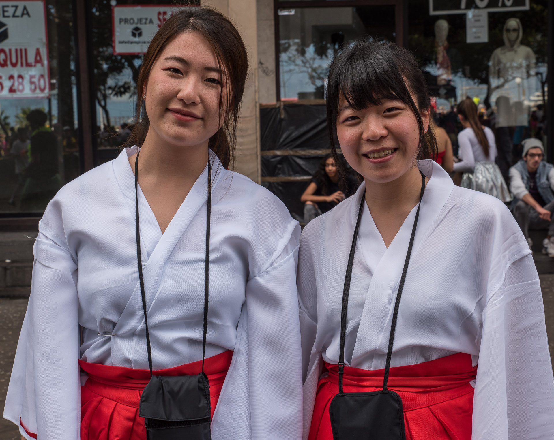 Dos turistas japonesas que puestas a disfrazarse han pensado que lo mejor era la ropa tradicional de su tierra.