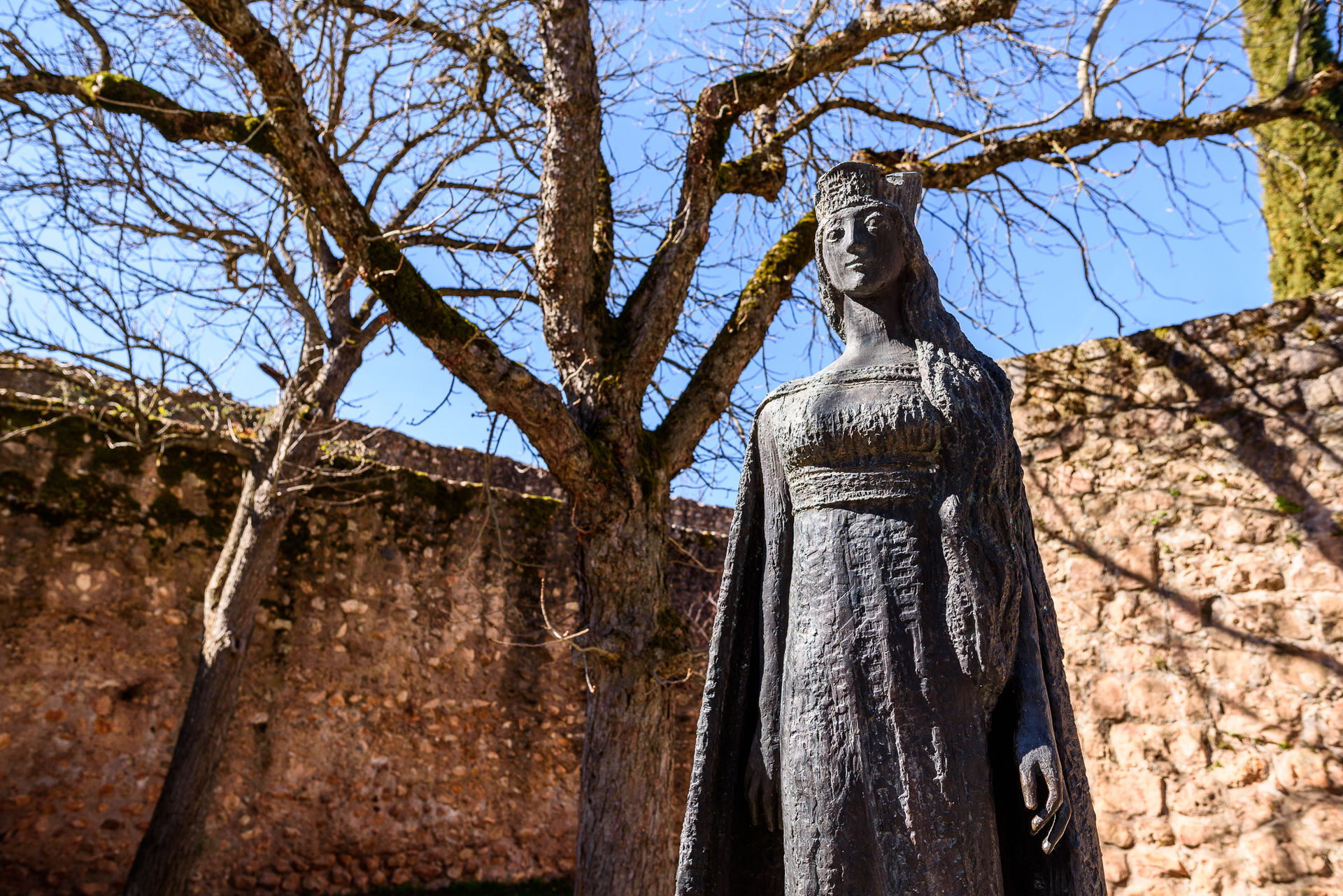 La estatua de cuerpo entero dedicada a Cristina de Noruega, frente a la Colegiata.