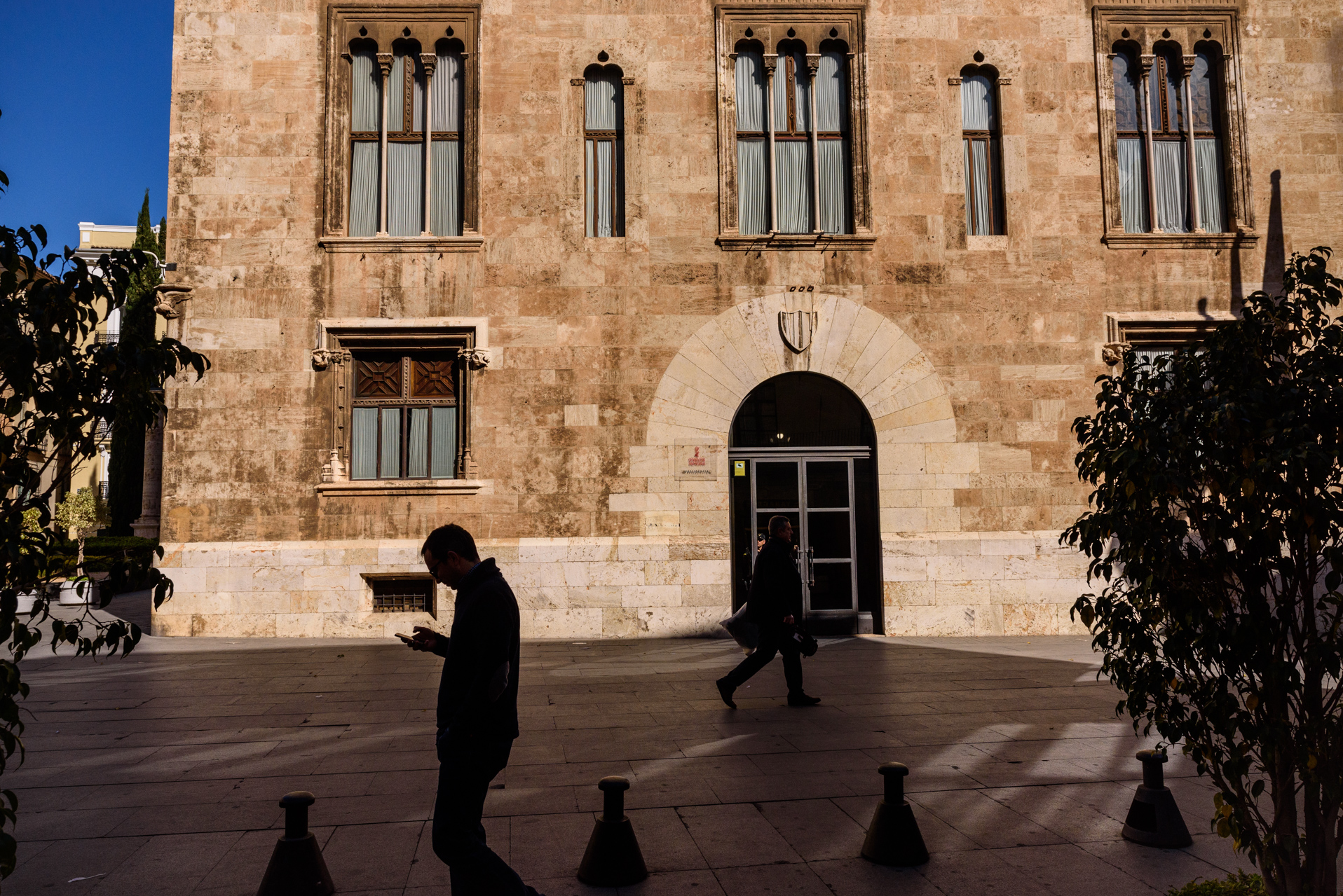 Otra vista de la puerta de acceso al Palacio de la Generalitat Valenciana.