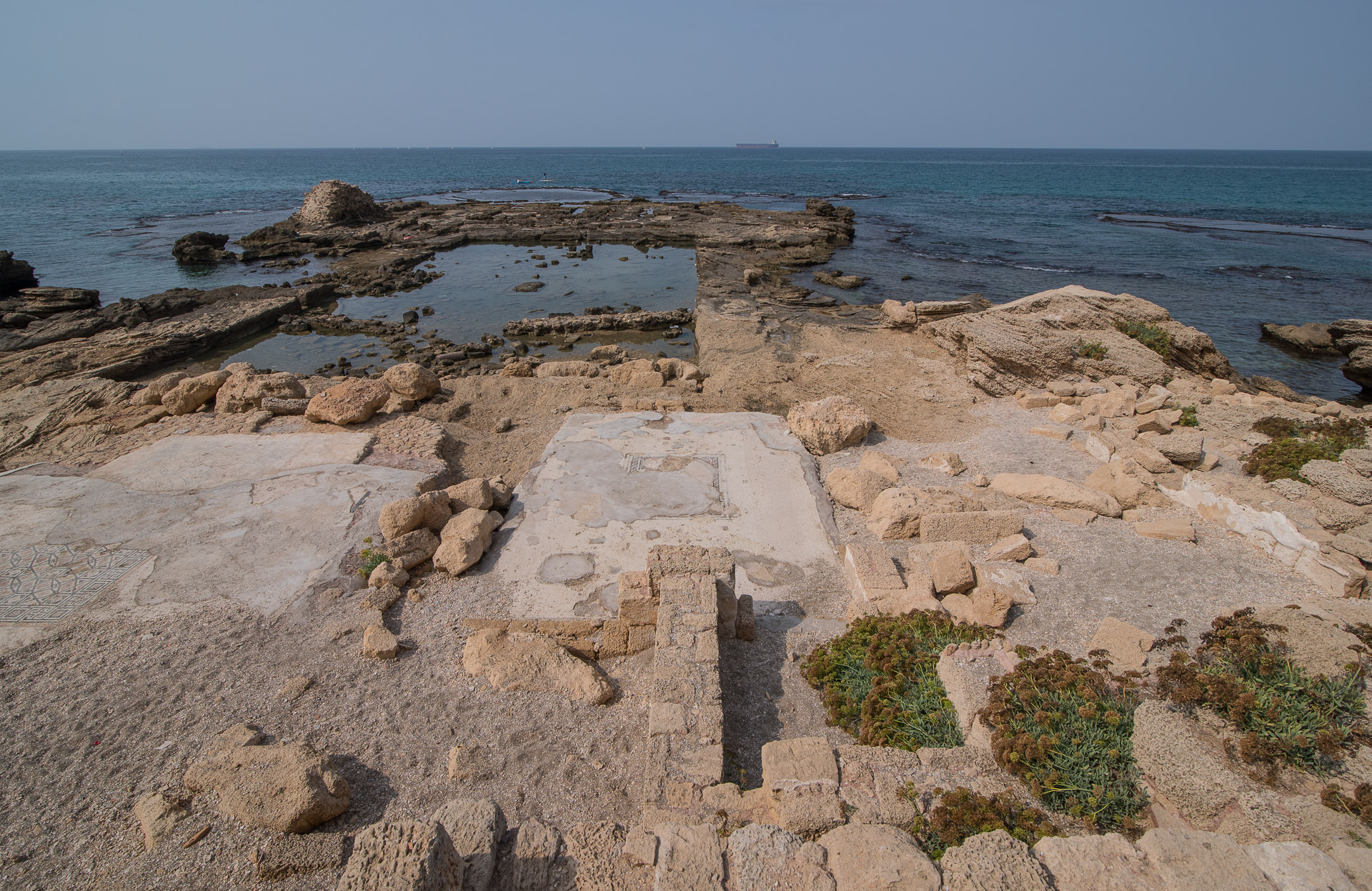 Los restos arqueológicos de Cesarea llegan a sumergirse en el mar.
