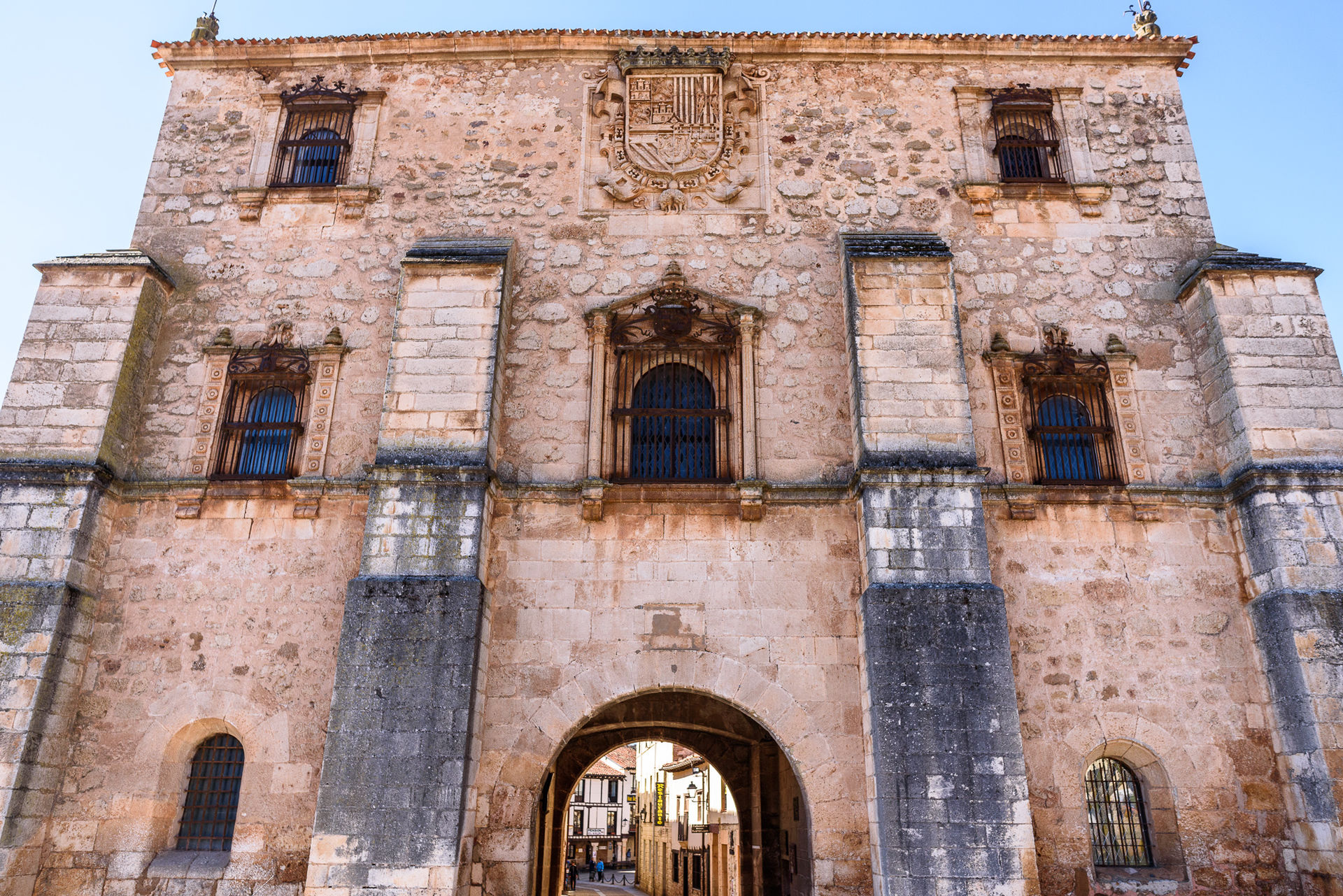 Lo primero que se nos presenta al llegar a Covarrubias es la puerta del Archivo del Adelantado de Castilla, que da entrada a la villa (Puerta Real) atravesando un edificio de estilo herreriano con enormes contrafuertes. Fue construida por Felipe II y aloja la oficina de Turismo.