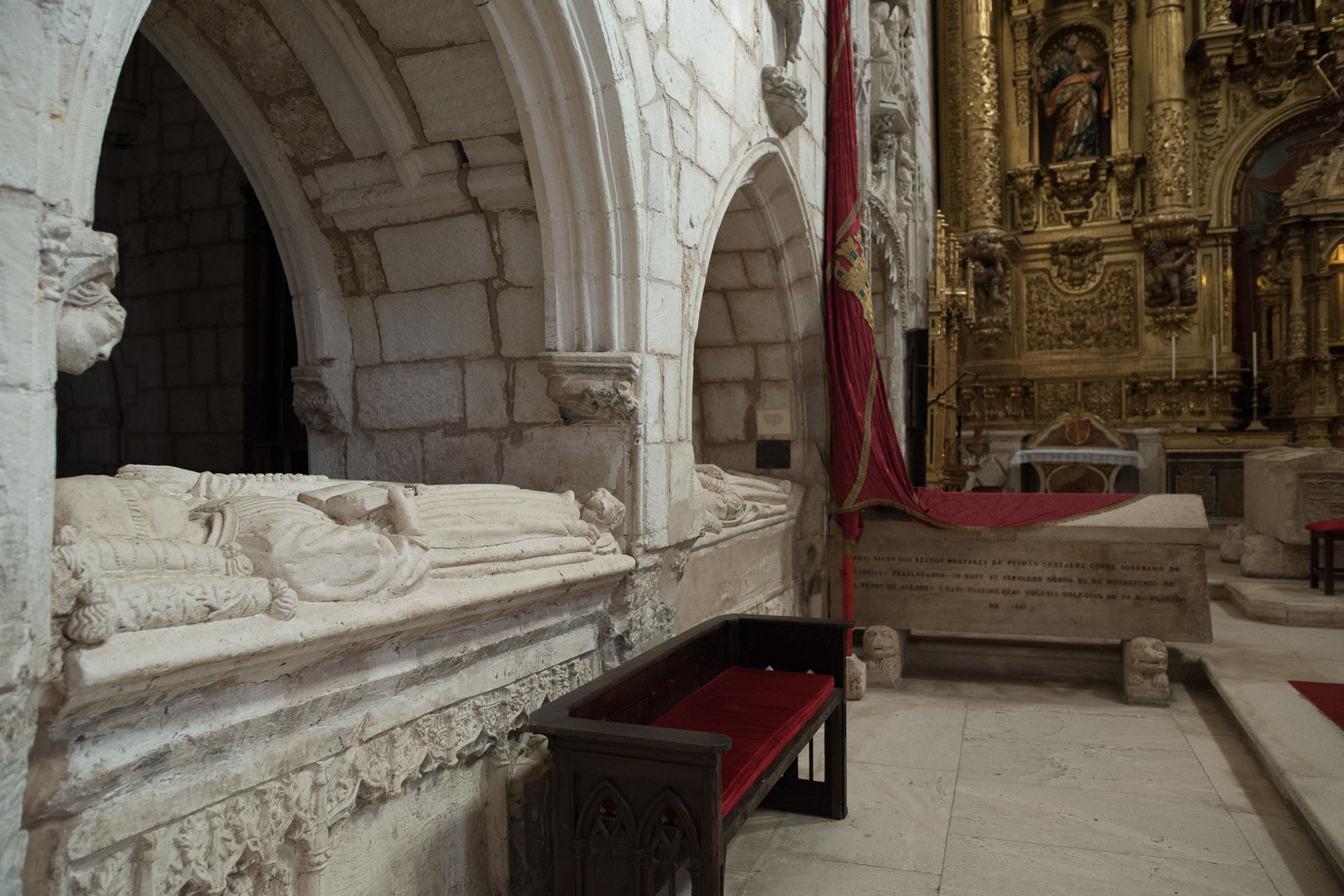 En el presbiterio descansan desde 1841 (antes estuvieron en San Pedro de Arlanza) los restos de Fernán González y su esposa Sancha.