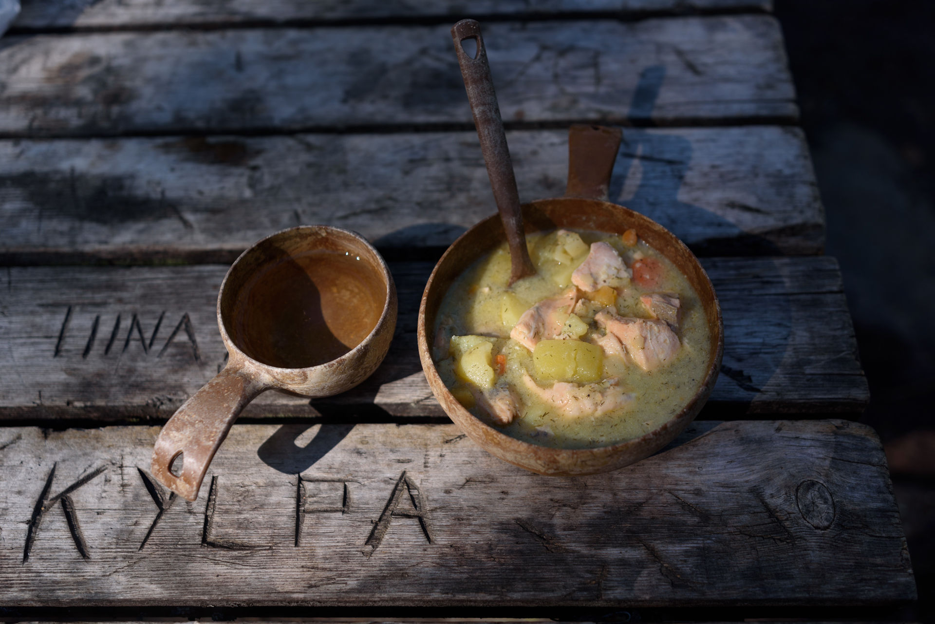 Un plato de sopa de salmón para recuperar fuerzas durante la caminata.