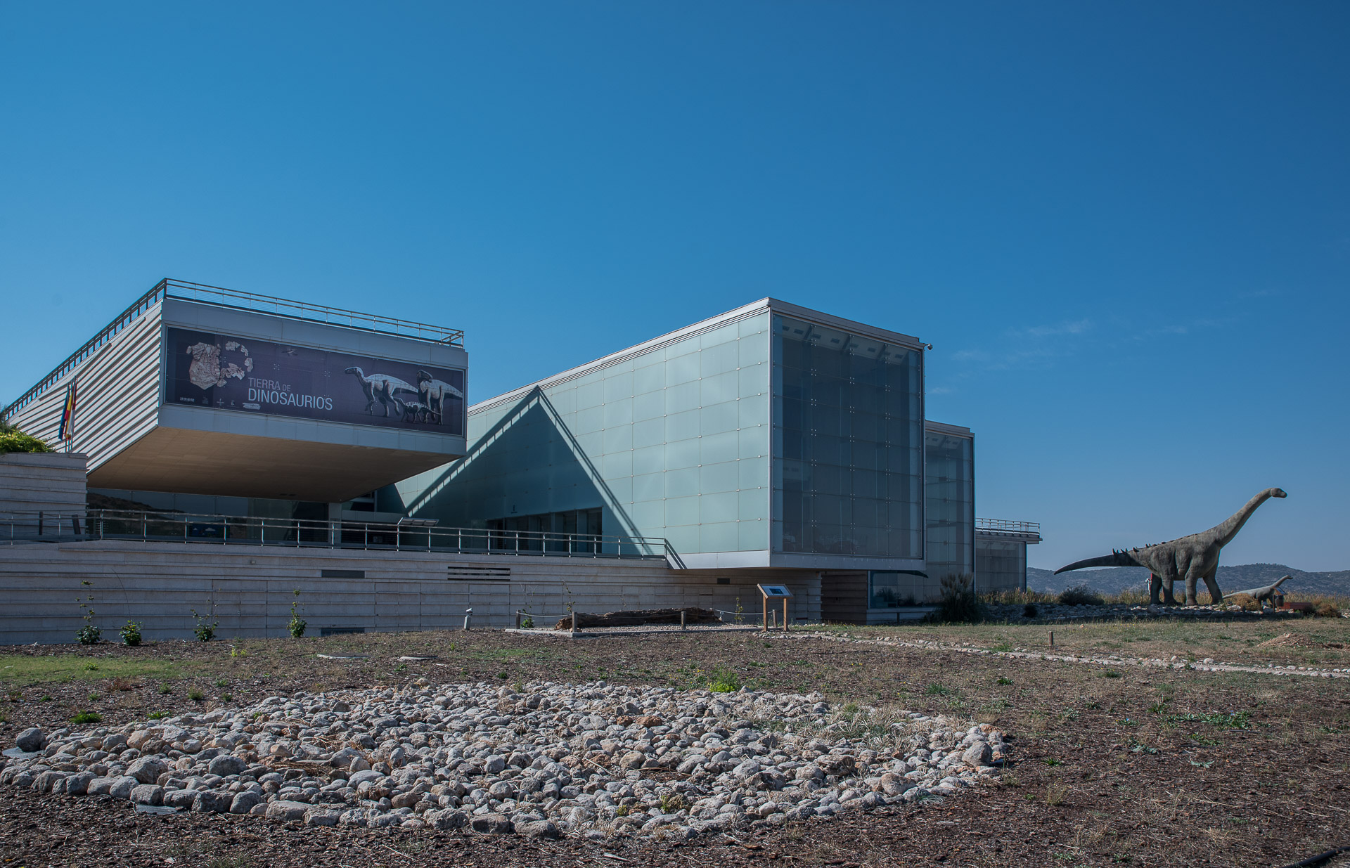 El exterior del Museo Paleontológico de Castilla-La Mancha, que aprovecha unos edificios modernos pero construidos antes de su creación.