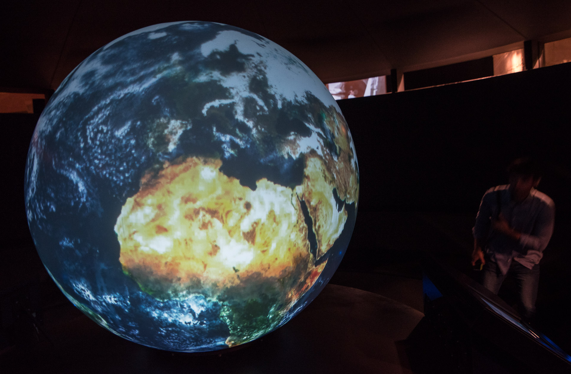 Una reproducción de la Tierra ofrece información interactiva sobre nuestro planeta.