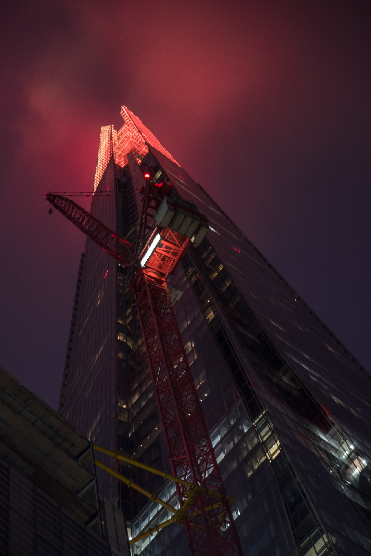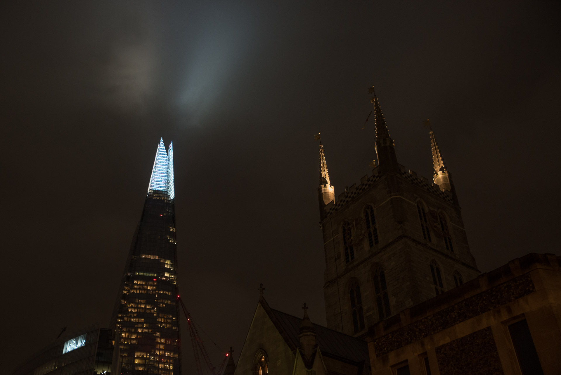 Con su iluminación nocturna reflejándose en las nubes bajas The Shard puede llegar a resultar una imagen inquietante.