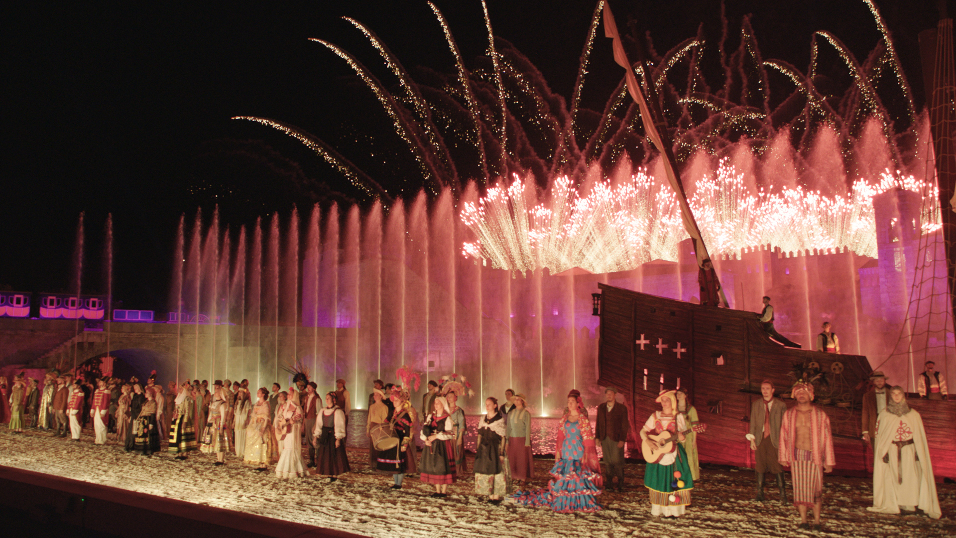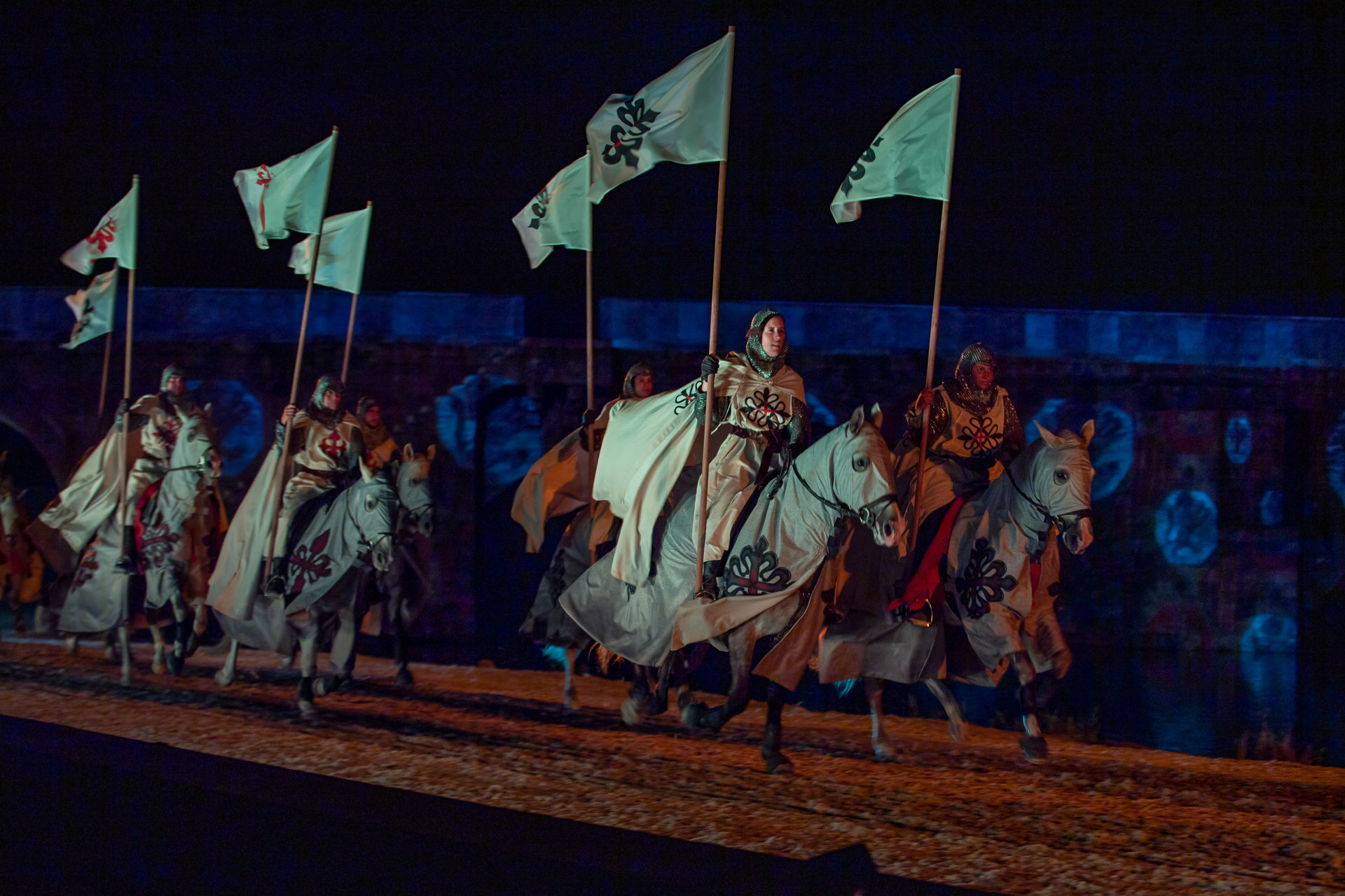 Más de 2.000 personajes son representador por 185 actores, jinetes y acróbatas en un escenario de 5 hectáreas.