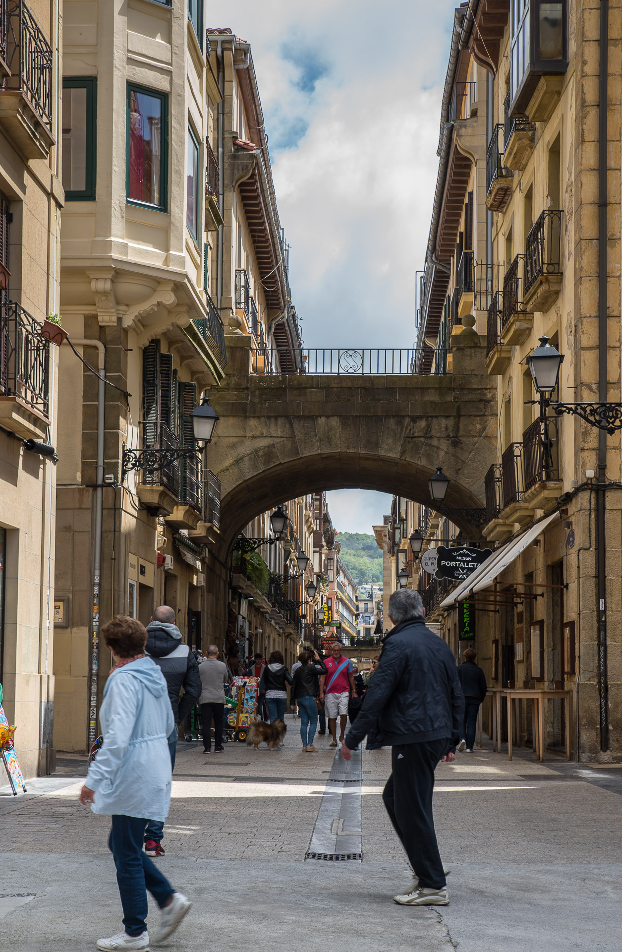 Una de las calles de la Parte Vieja de San Sebastián, vista desde las inmediaciones del puerto.