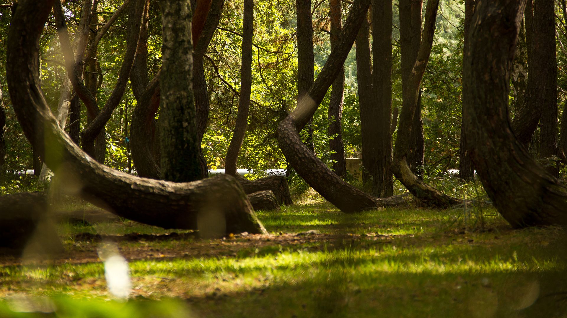 En un punto al norte de Polonia, casi en la frontera con Alemania se puede ver un bosque mágico donde viven aproximadamente 400 árboles manteniéndose con una curvatura de 90 grados en su base, dándole un toque de cuento a este pequeño lugar.