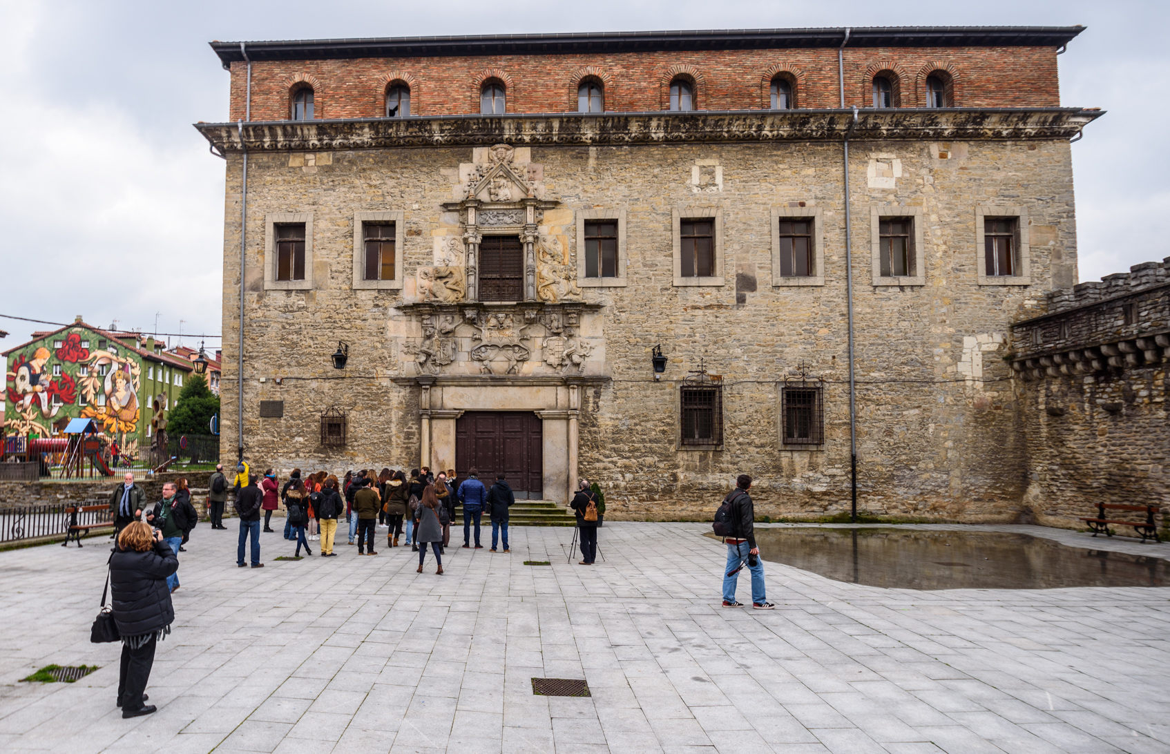 La fachada del Palacio de Escoriaza Esquibel de 1540, es un ejemplo de edificio civil renacentista con una interesante portada plateresca.