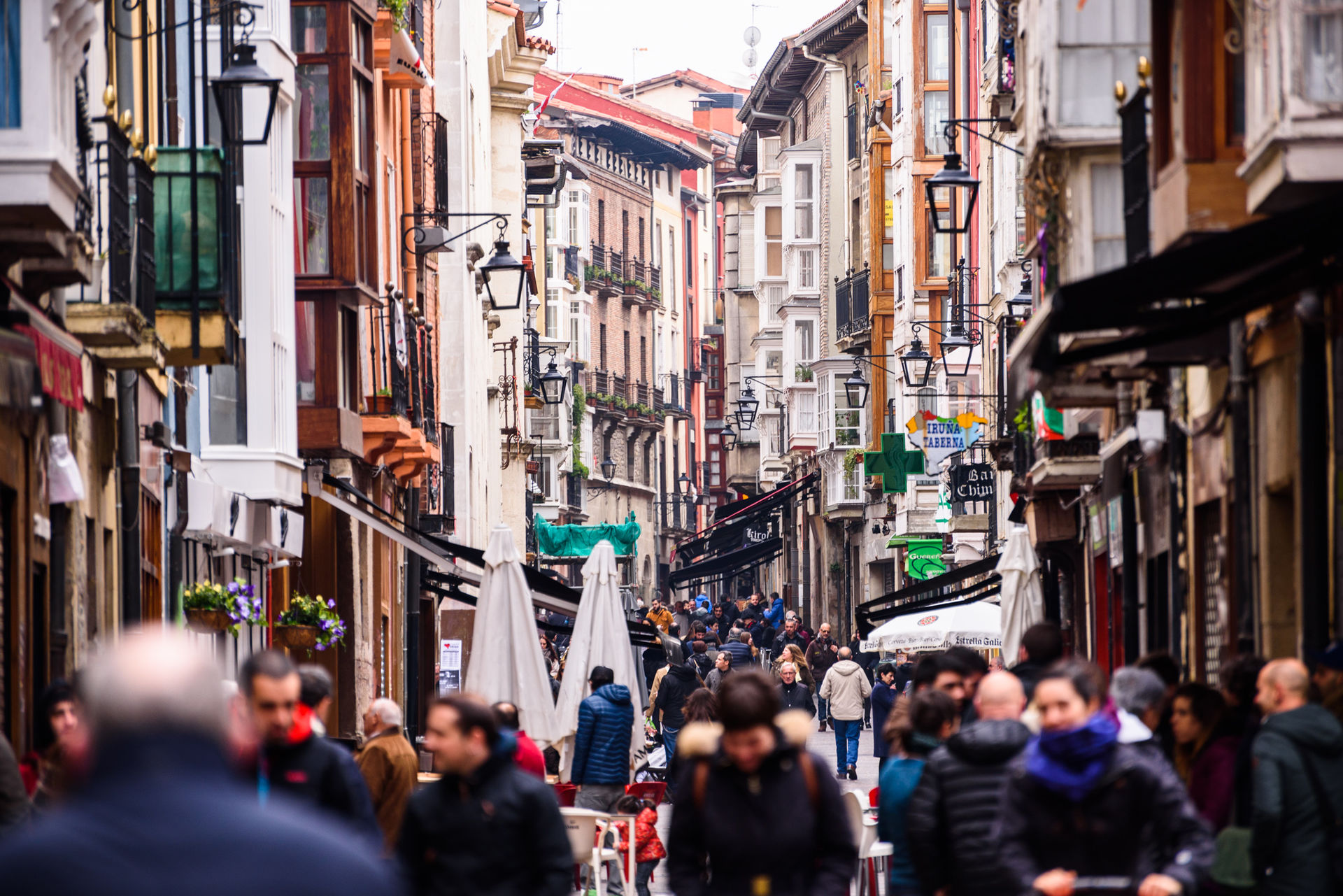 Una vista del bullicio y buen ambiente en la calle Cuchillera, en pleno casco histórico de Vitoria.