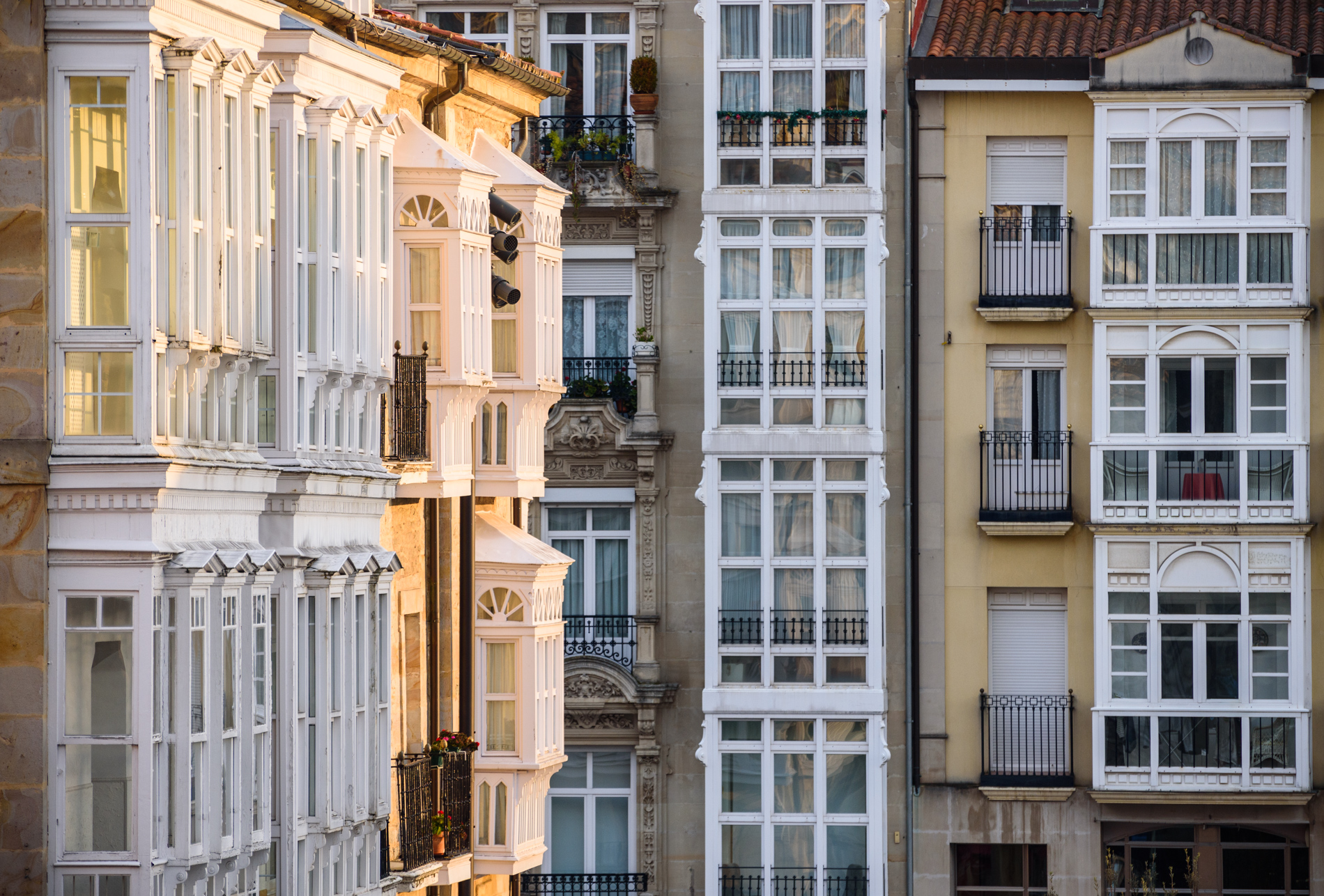 Los grandes ventanales y terrazas del casco antiguo de la ciudad de Vitoria darían para un libro o un documental.
