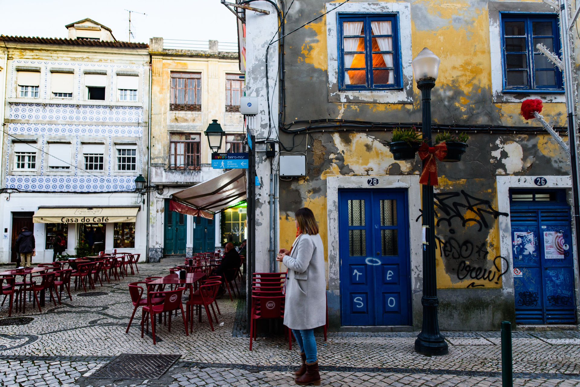 Otra estampa del barrio de Beira Mar. donde los propietarios de estas casas protegidas deben mantener los garajes en la parte frontal de los edificios ya que era donde antiguamente se guardaban las embarcaciones de los pescadores.