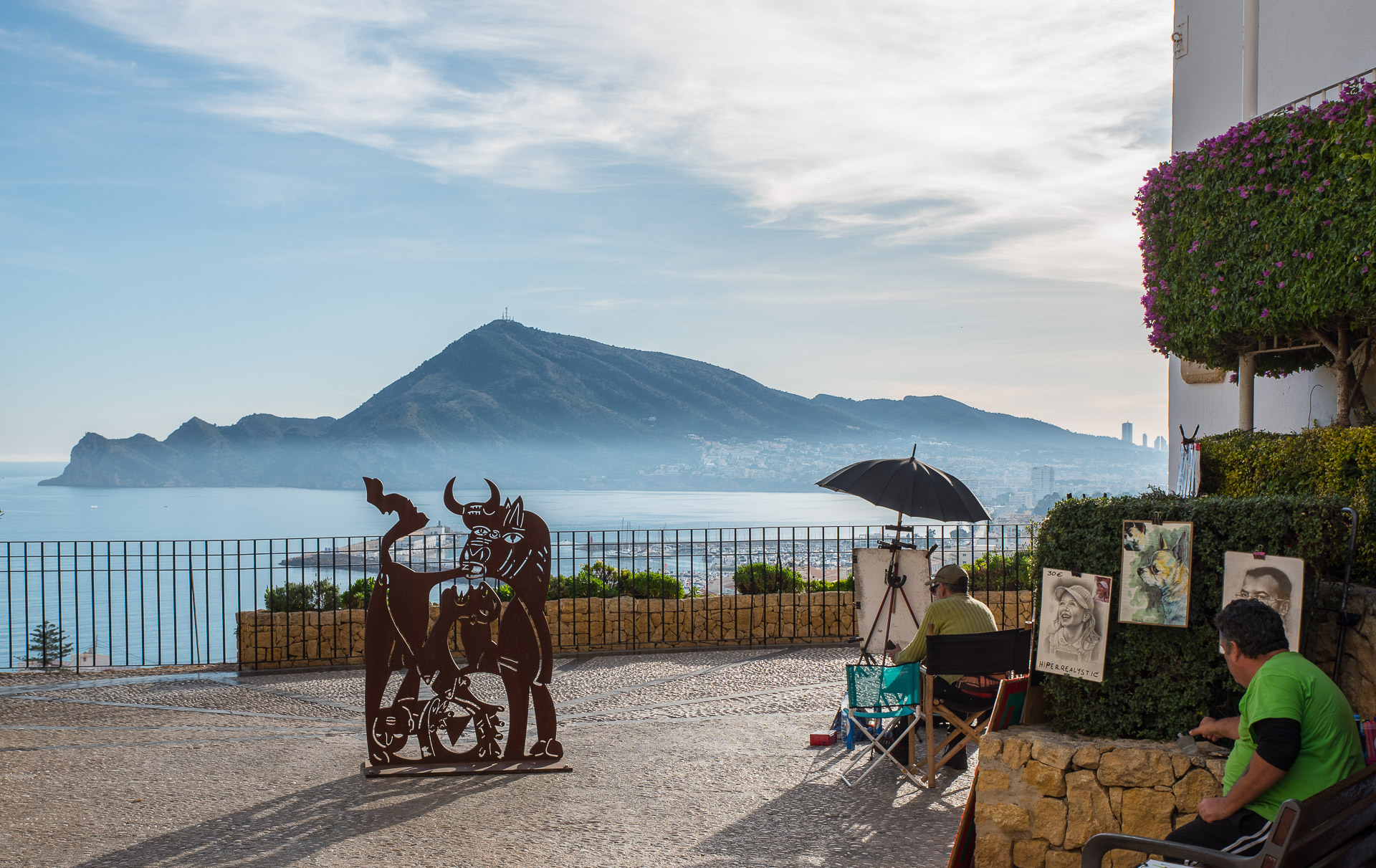Otra vista del Peñón de Ifach, desde unas peculiares esculturas picassianas que pueden verse en algunos lugares de Altea.