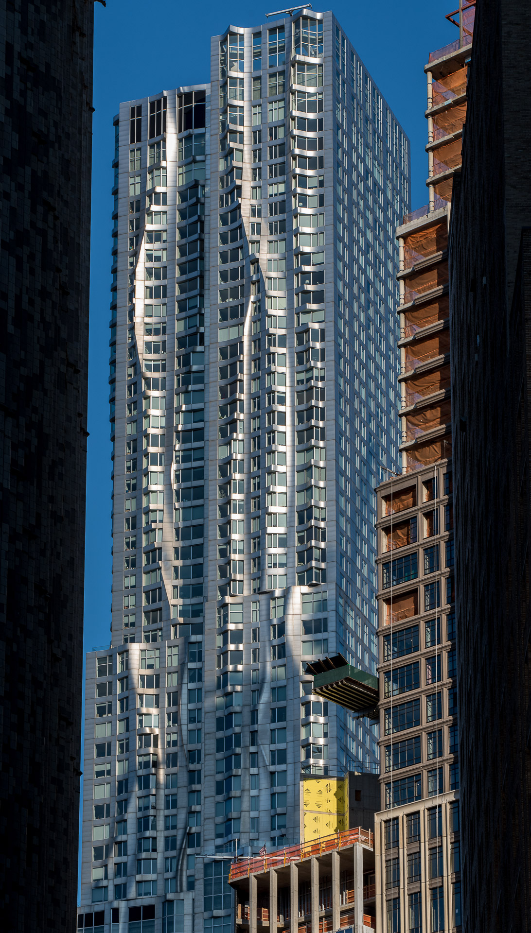 El 8 Spruce Street, de 264 metros de altura, es un edificio de viviendas -aunque también tiene una escuela y un hospital- y es la aportación del conocido Frank Gehry al skyline de Nueva York.