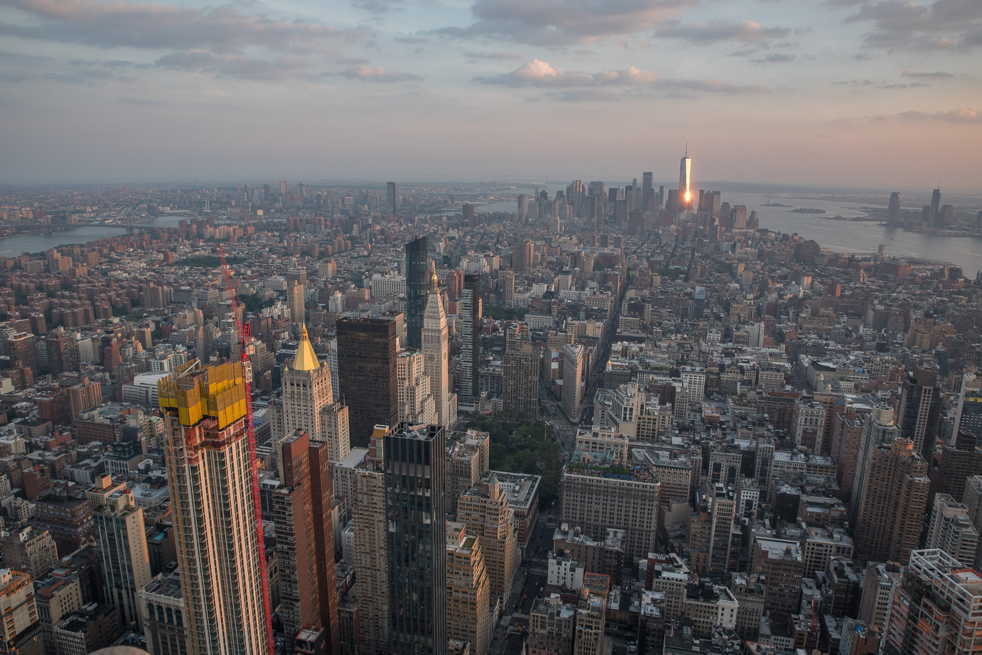 La puesta de sol sobre el Hudson tal y como se ve desde el Empire State Building.