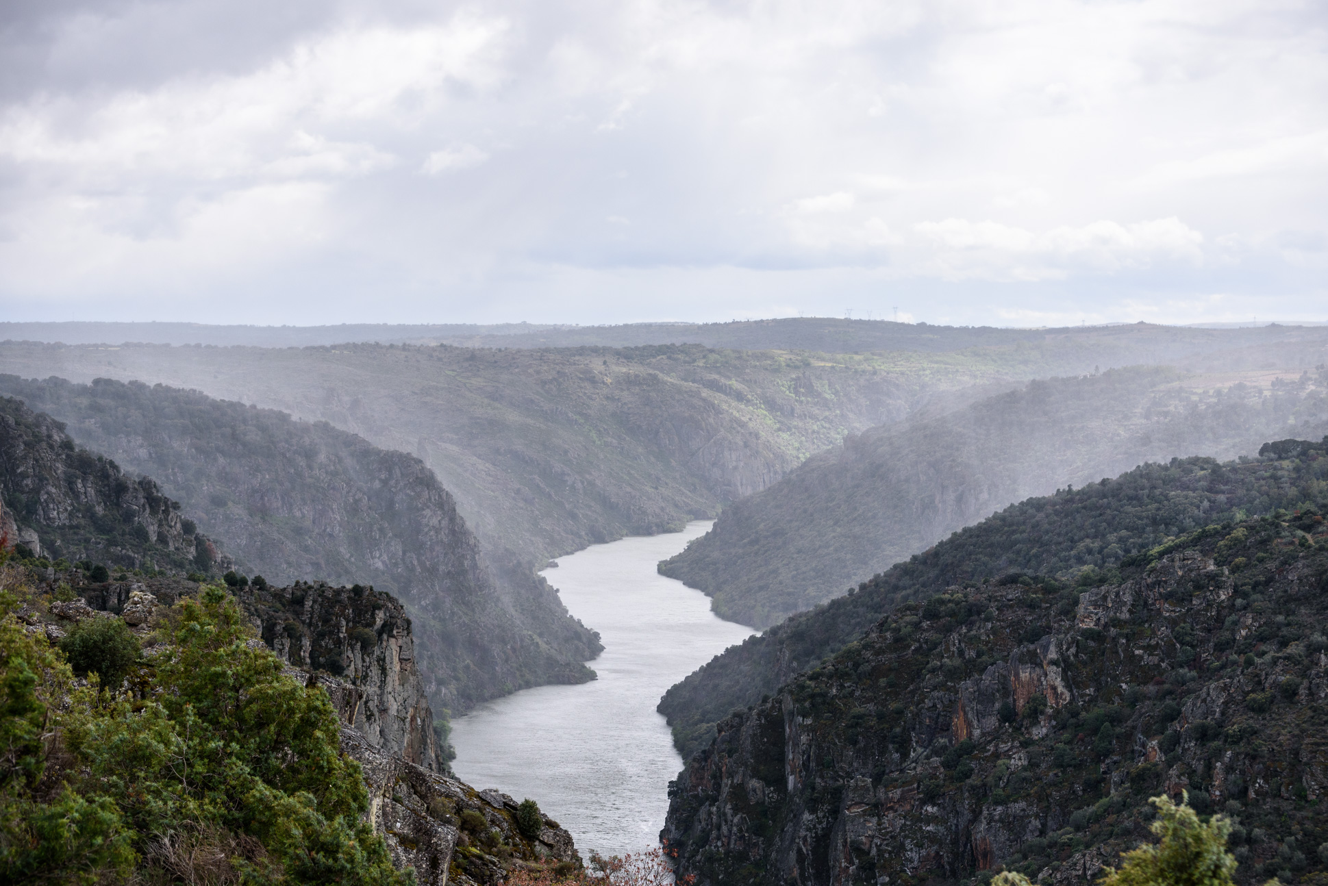 Si Noruega tiene sus fiordos, Castilla y León tiene sus Arribes. Una vista espectacular del poder de erosión de la naturaleza desde uno de los miradores sobre el Duero. En la fotografía, el momento en el que una pequeña tormenta descarga lluvia sobre el río. La paz y la tranquilidad son la nota dominante en estas latitudes.