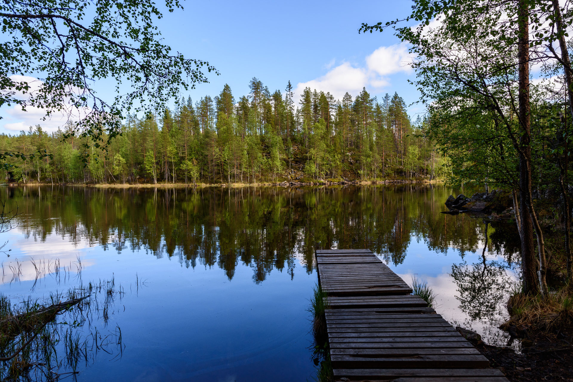 Un lugar único en el mundo para poder perderse, entre millones de árboles y olvidarse durante una temporada de los problemas terrenales es Finlandia. La estampa muestra un lago interior en el parque nacional de Oulanka en Laponia, Durante el verano esta zona de Finlandia se convierte en un auténtico vergel.