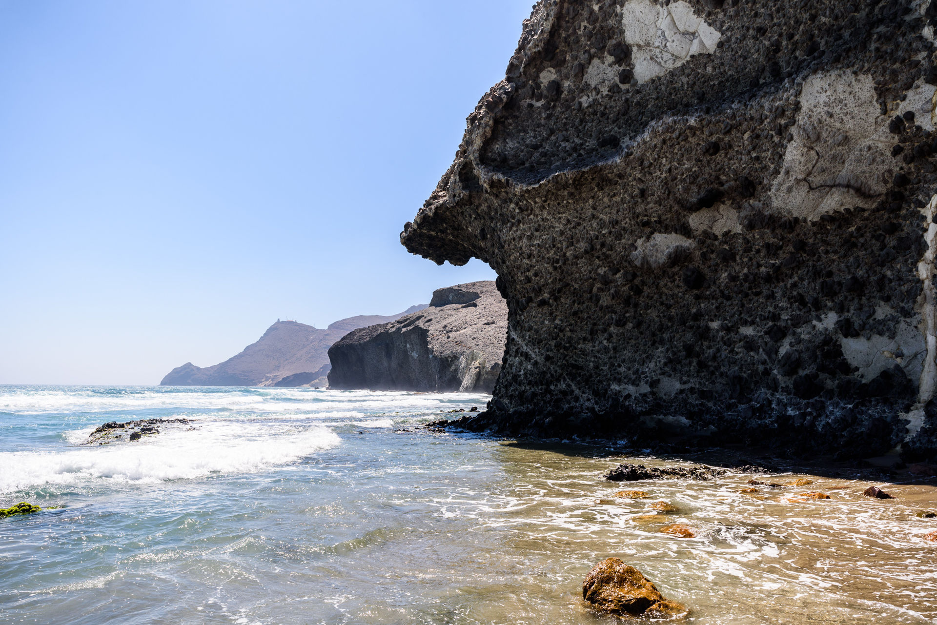 La playa de Mónsul, de 400 metros de longitud, debe su singularidad a las formaciones de lava erosionada que la rodean, a la belleza de su arena fina y a su agua cristalina. En ella se rodó la famosa secuencia de la película Indiana Jones y La última cruzada.