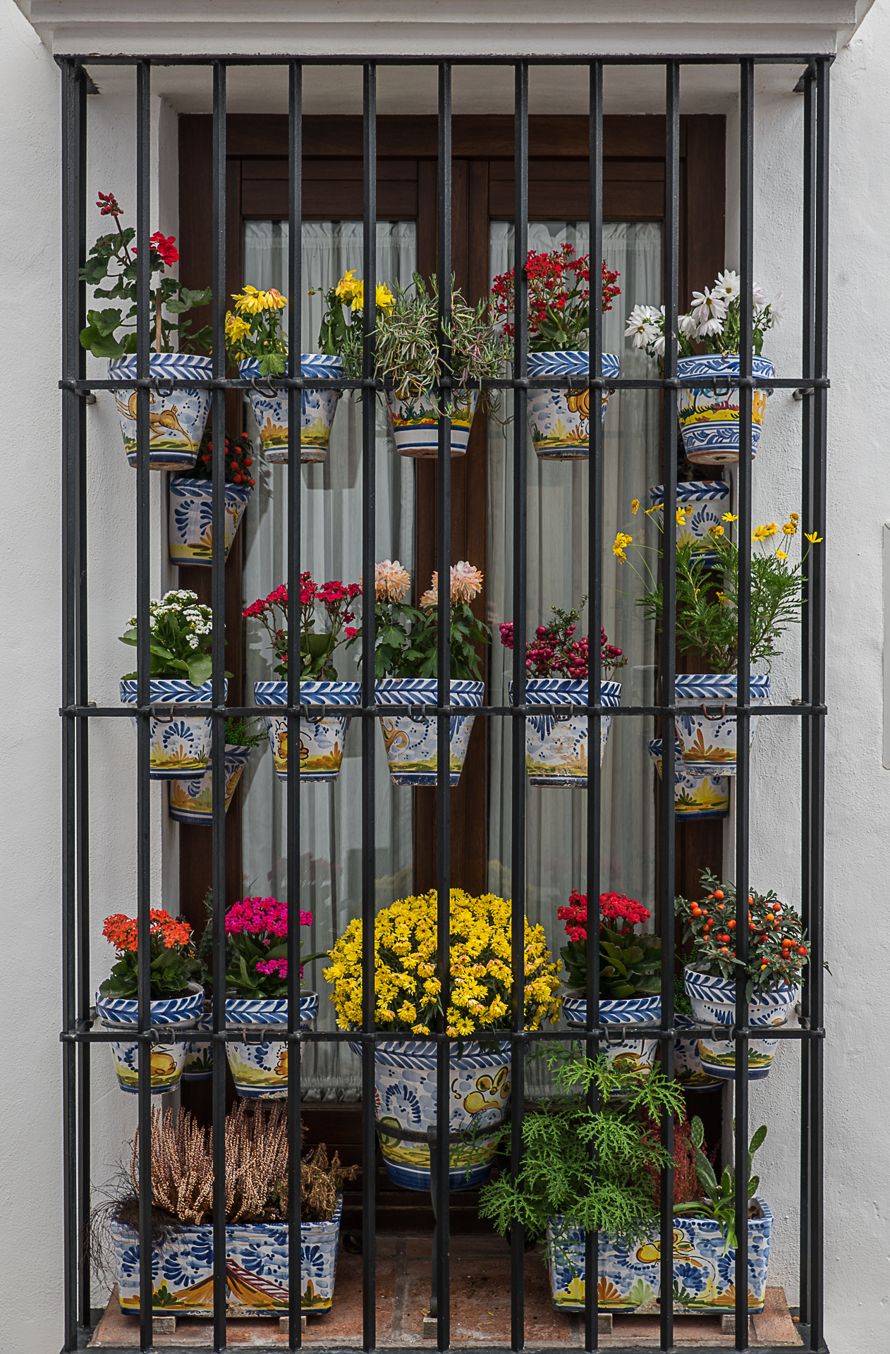 Una de las ventanas enrejadas de Grazalema, con flores incluso en diciembre.