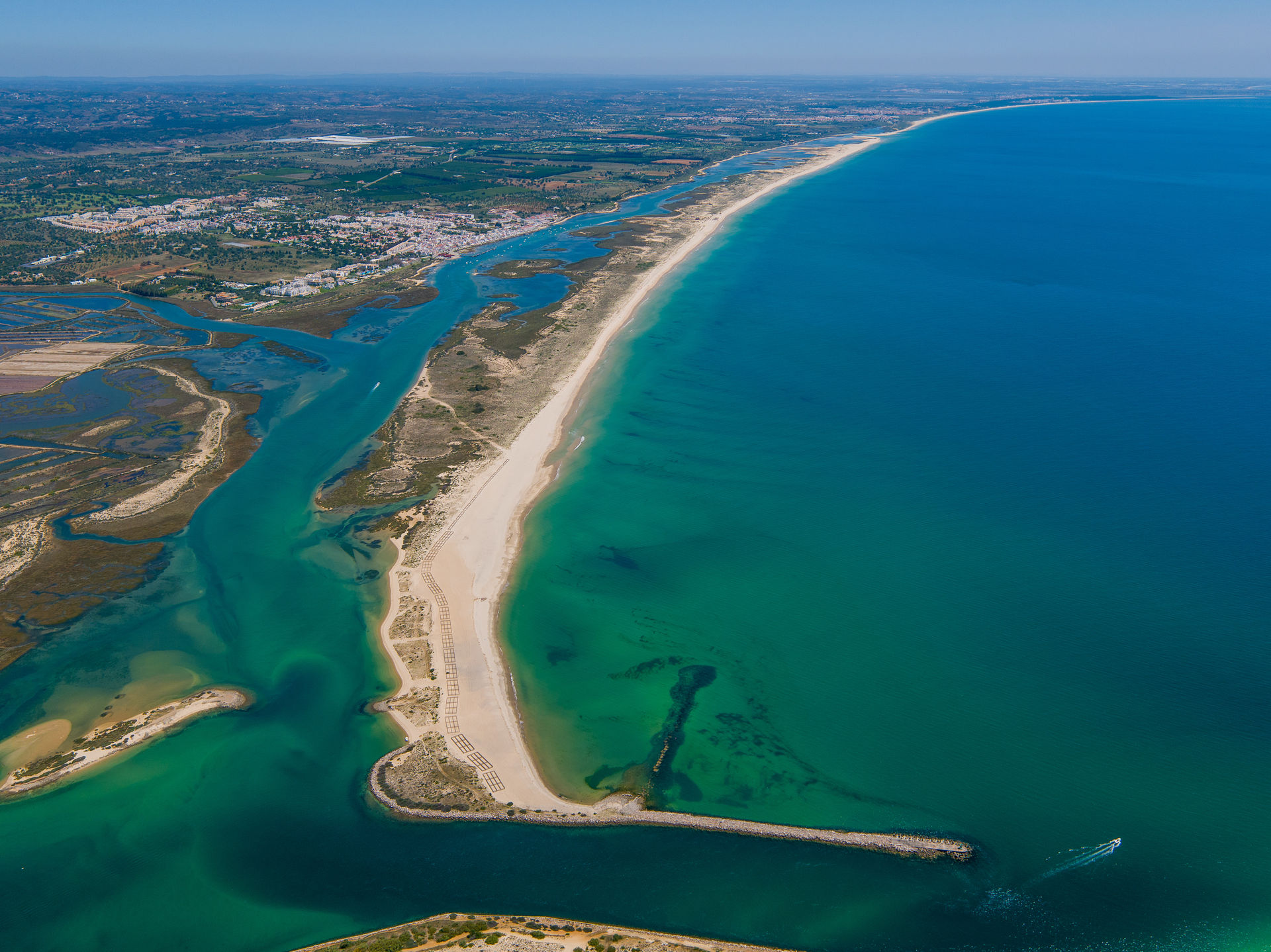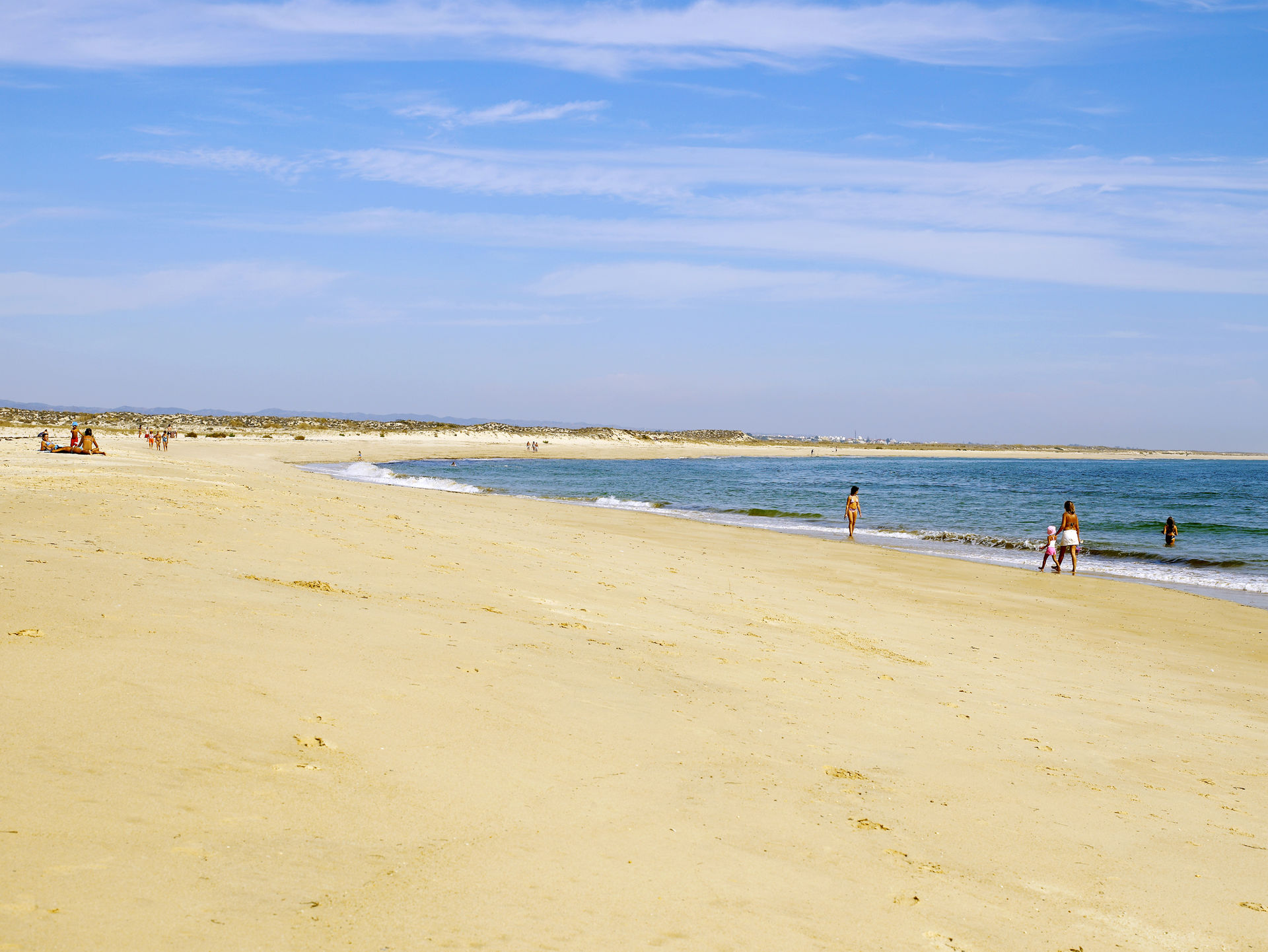 Siguiendo los caminos laberínticos de Ría Formosa, ya en sus límites, llegamos a la Praia de Cacela Velha, otro paraíso de arena blanca bañada por aguas turquesas. Hasta ella se puede llegar a pie, (a través de la Praia de Manta Rota) o en barco.