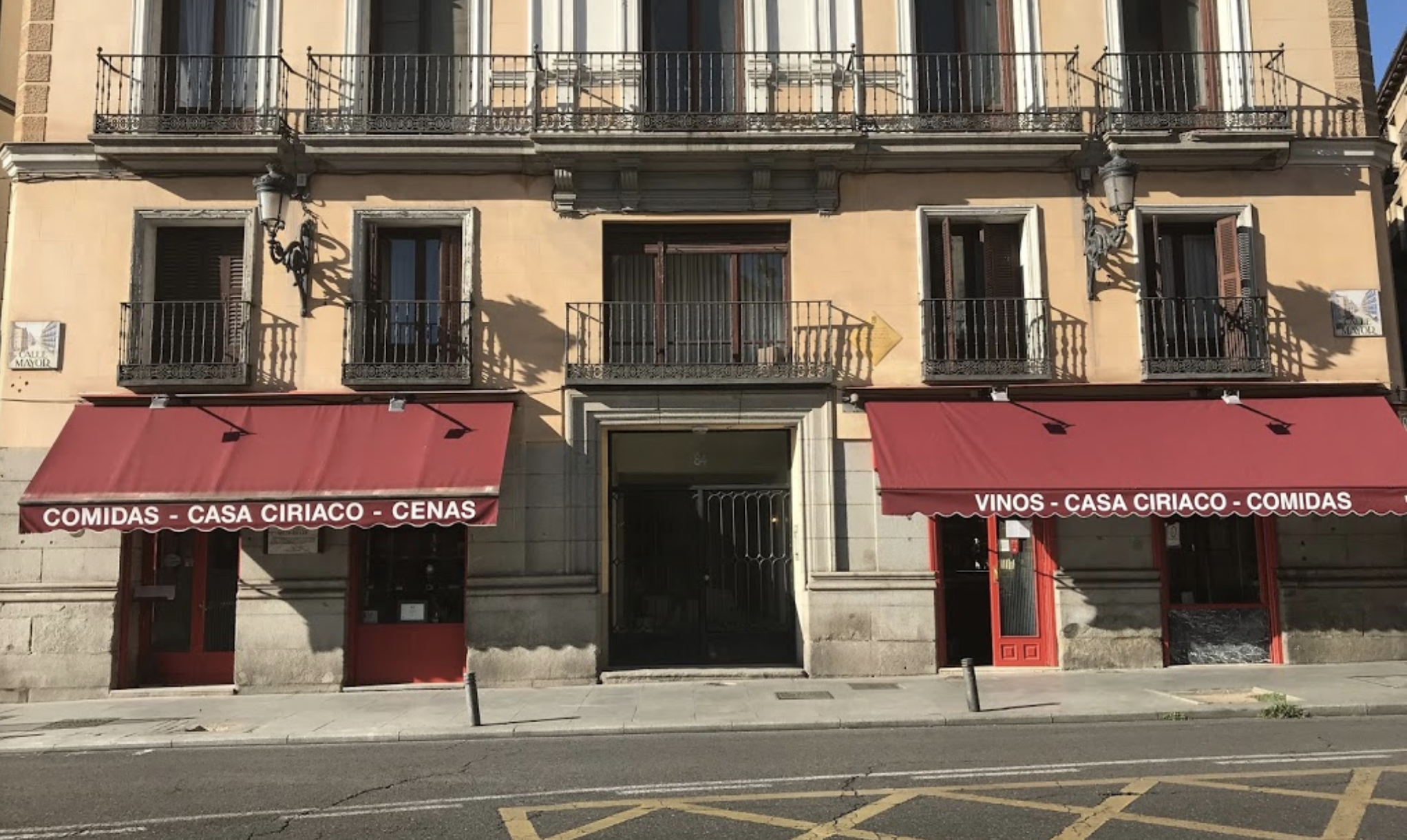 Fundado como tienda de vinos en 1887, toma su nombre de Ciriaco Muñoz Sanz, que con su hermano Pablo, lo transformó en restaurante en 1929. Sirven comida madrileña, incluidos el cocido y la gallina en pepitoria. Lo frecuentaron el pintor Ignacio Zuloaga, los artistas Eduardo Vicente o Gerardo Rueda, y escritores como Valle, Camba o Bergamín.