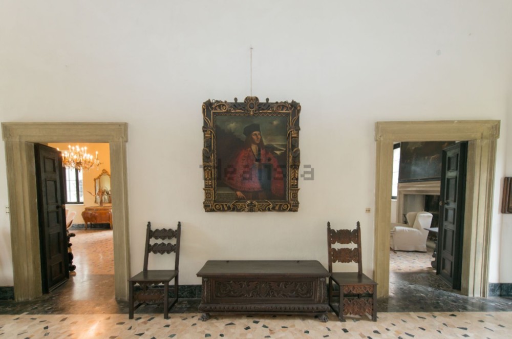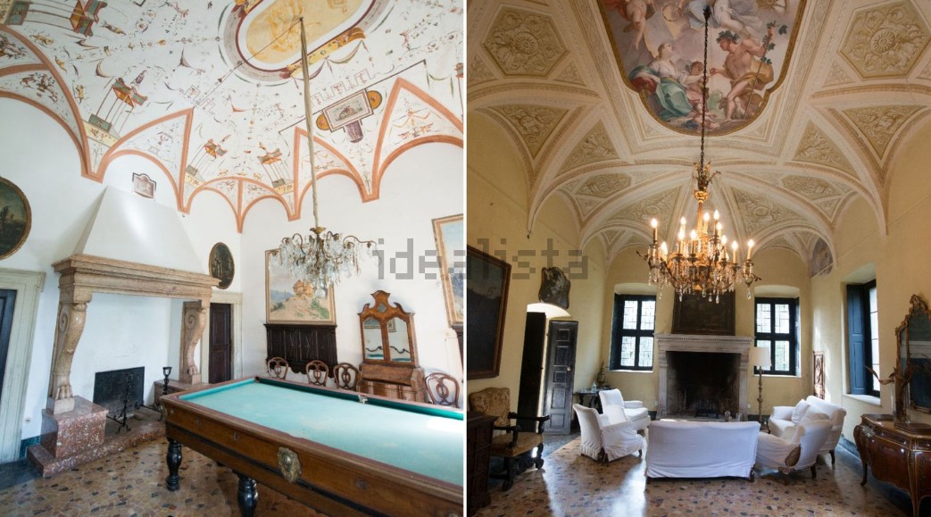 El salón principal tiene un hermoso techo con frescos, otros están presentes en las otras salas, algunos de los cuales fueron hechos en 1.500 por Aurelio Busso, un alumno de Raffaello.