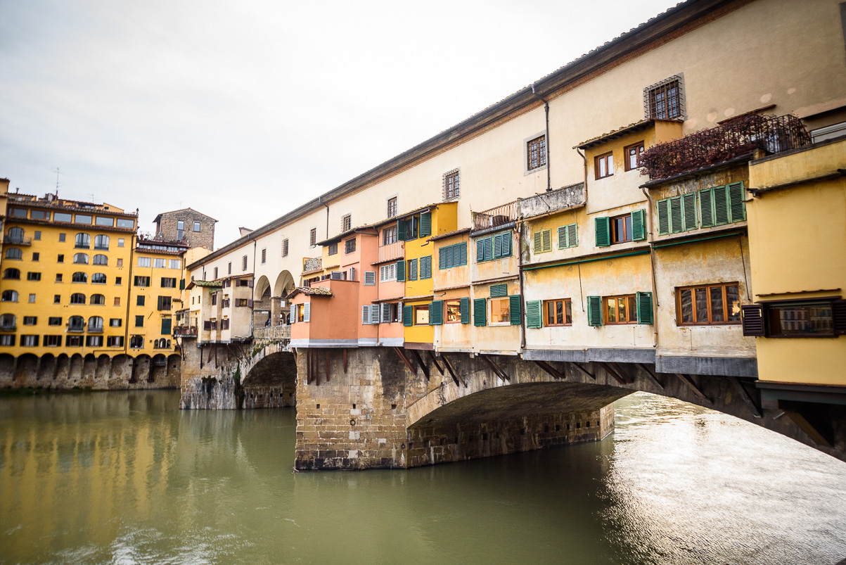 El río Arno es uno de los principales protagonistas en la historia de Florencia y, sobre todo, su puente más célebre y famoso: el Puente Vecchio. Un millón de veces fotografiado, visitado a cualquier hora del día, cualquier día del año por miles de turistas, este emblemático puente ha aguantado la friolera de 700 años en pie, no sin estar en riesgo de ser destruido en muchas ocasiones, siendo la más milagrosa la que se produjo durante la Segunda Guerra Mundial cuando se destruyeron todos los puentes de la ciudad excepto el Vecchio.