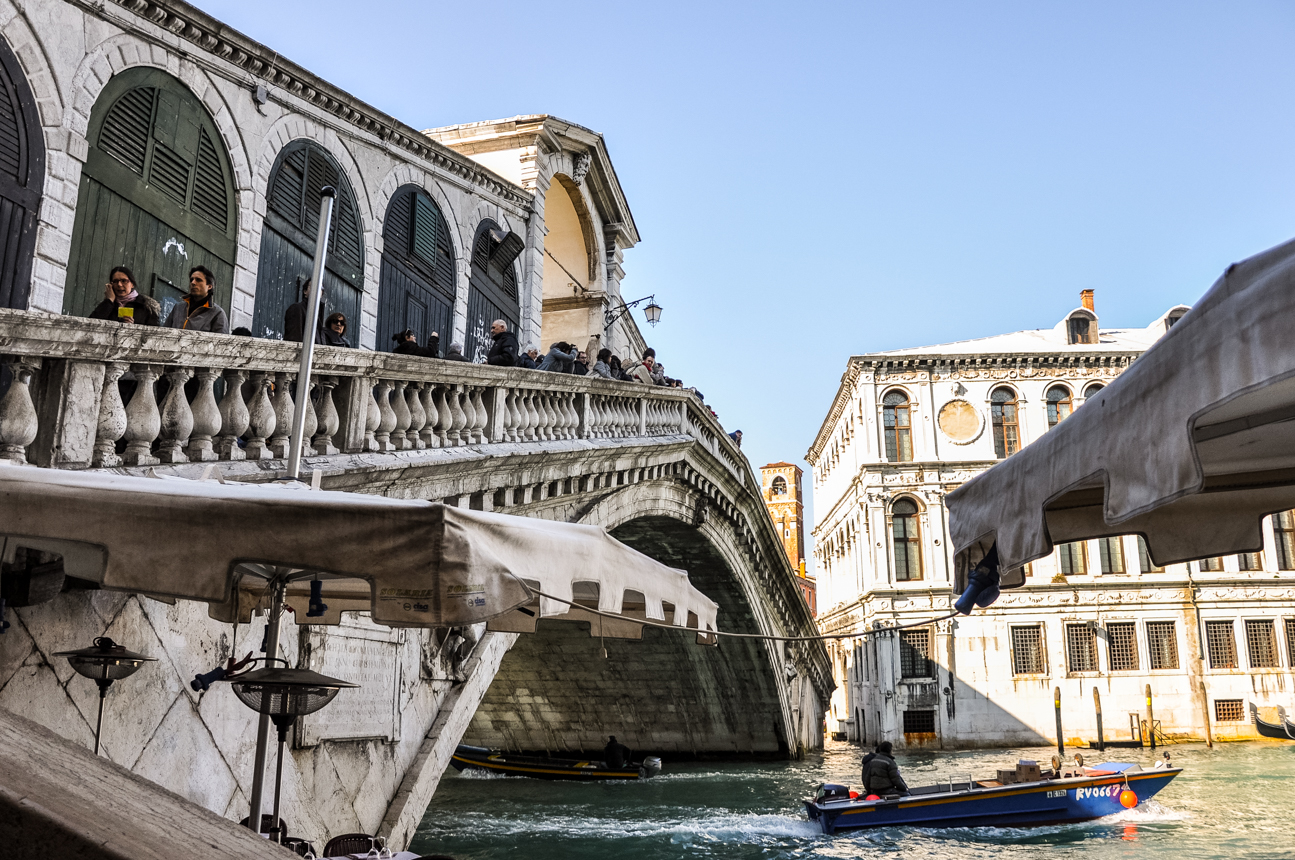 El puente Rialto, es el más famoso de la ciudad de Vencia y uno de lo más famosos del mundo. Este puente en arco de piedra, de 48 metros de longitud, atraviesa el Gran Canal y el recorrido y fotografiado diariamente por miles de turistas .