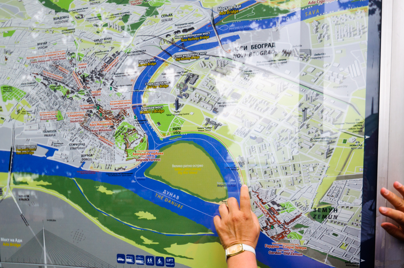 Un mapa turístico muestra la situación del pueblo de Zemun, ahora barrio de Belgrado. El río Danubio separa esta pequeña zona del resto de la ciudad.