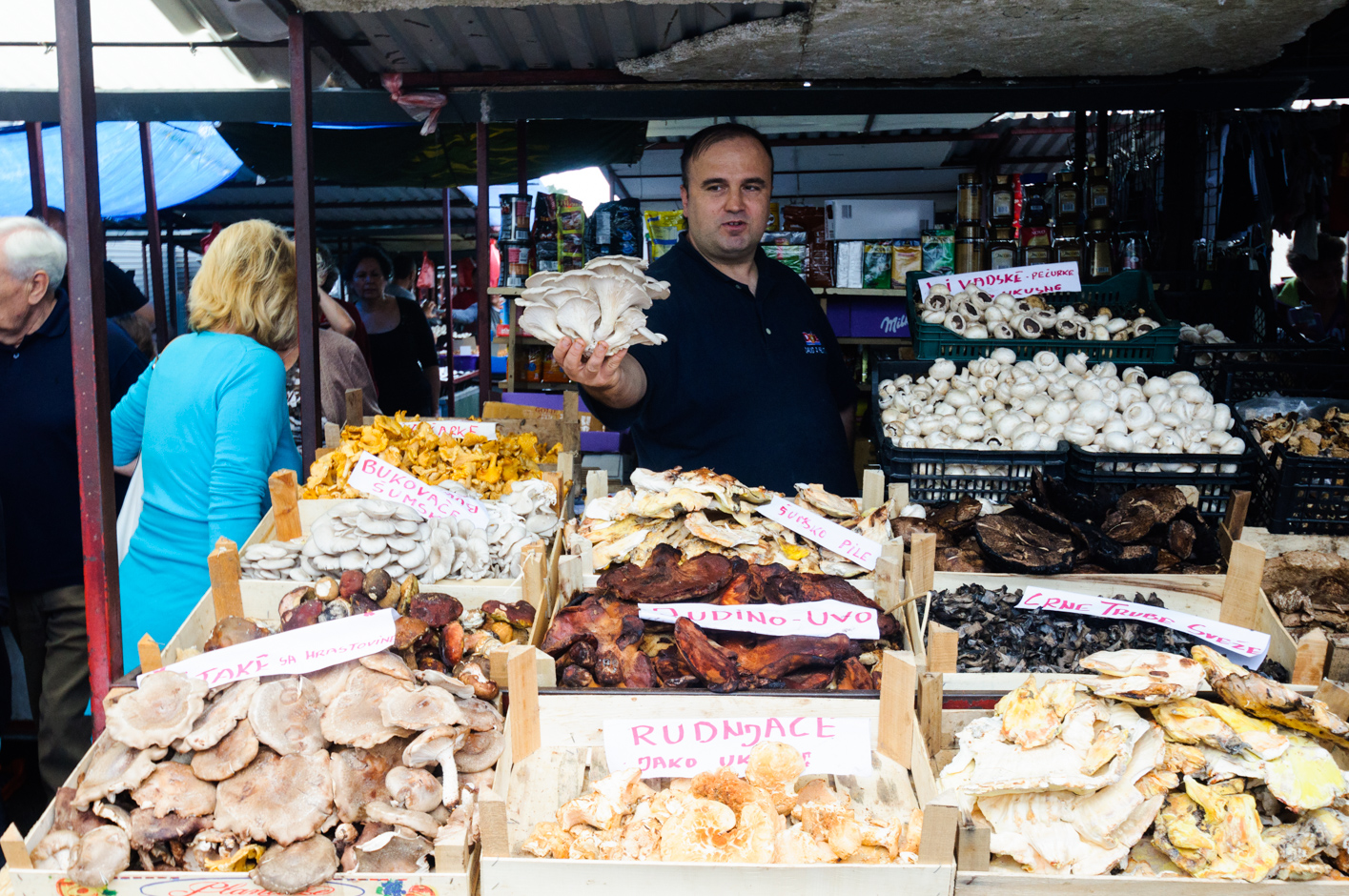 Un vendedor ofrece su mercancía en el interior del mercado de Zemun, famoso por sus productos de calidad.