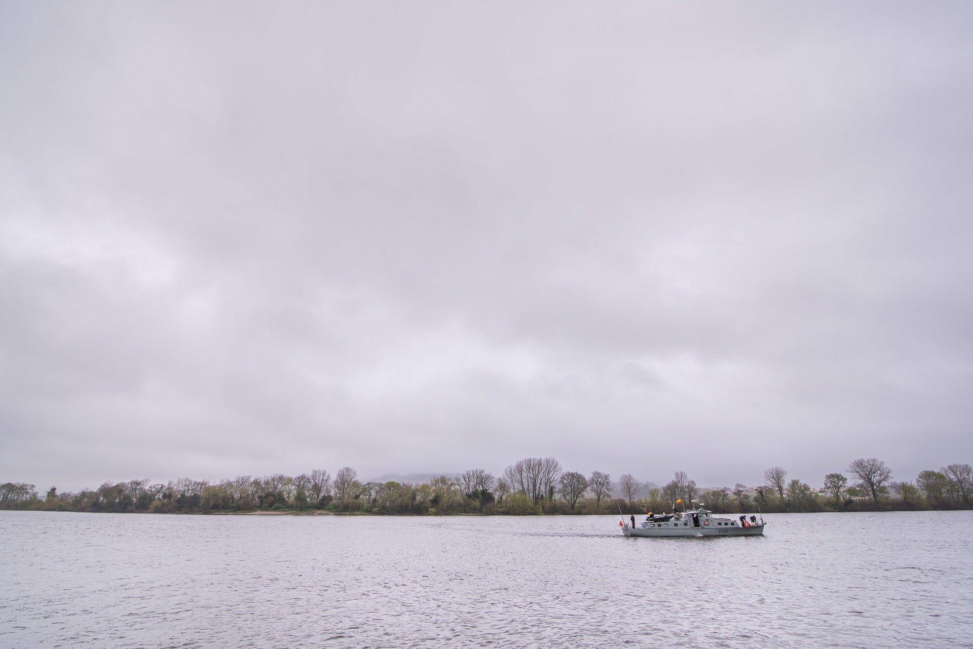 La vista de la ciudad de Tuy desde la orilla del río, con la catedral en lo alto.