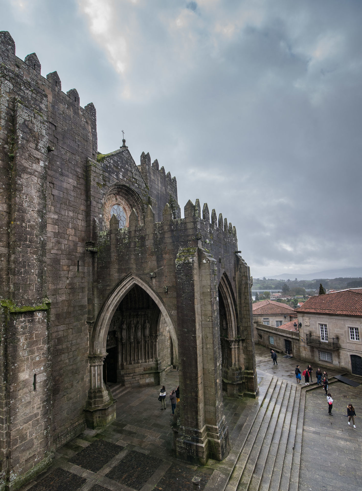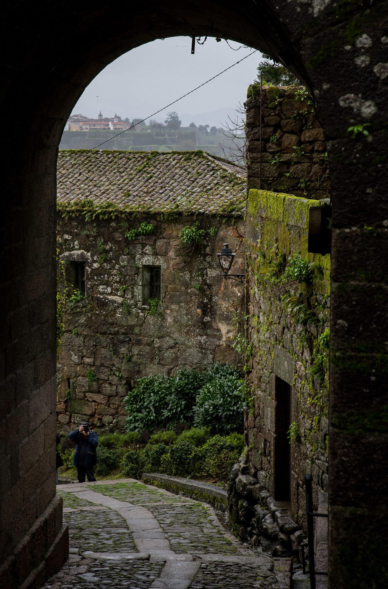 Un arco cerca de la catedral da entrada a la parte más alta de la ciudad. Al fondo, la Valença portuguesa.