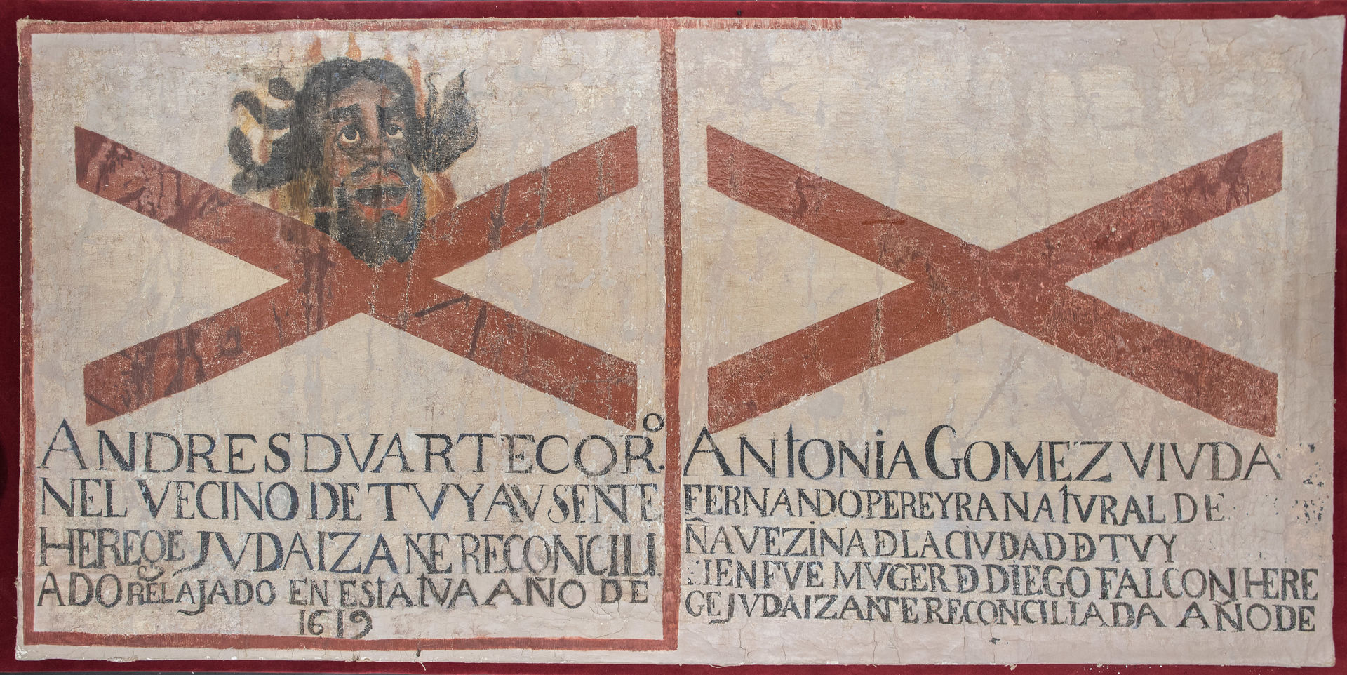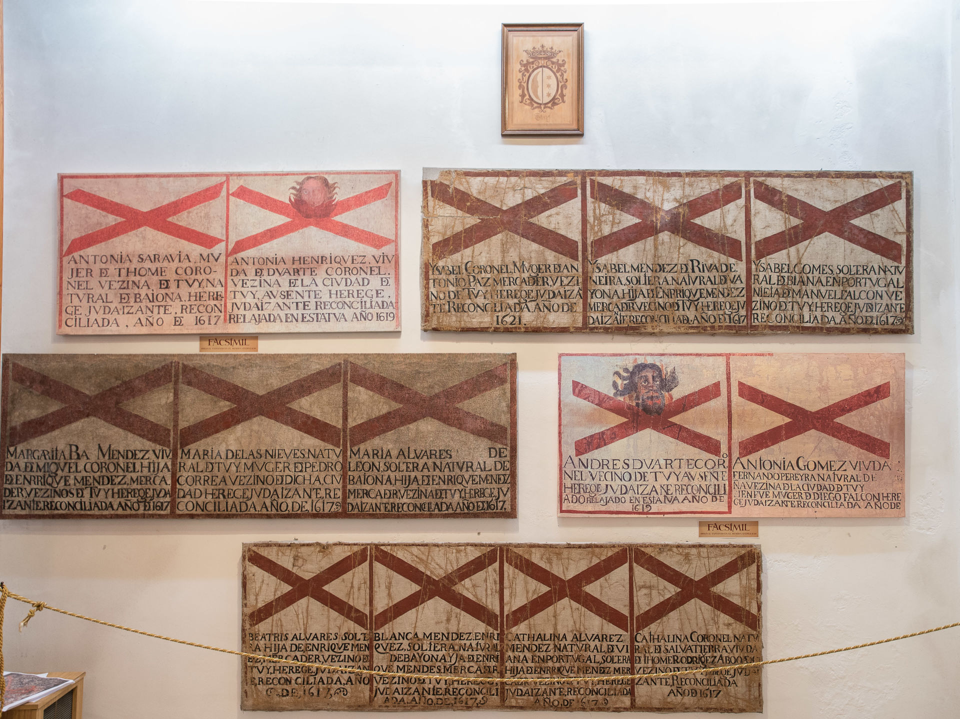 Los sambenitos de la inquisición milagrosamente conservados en Tuy, expuestos en el Museo Diocesano.