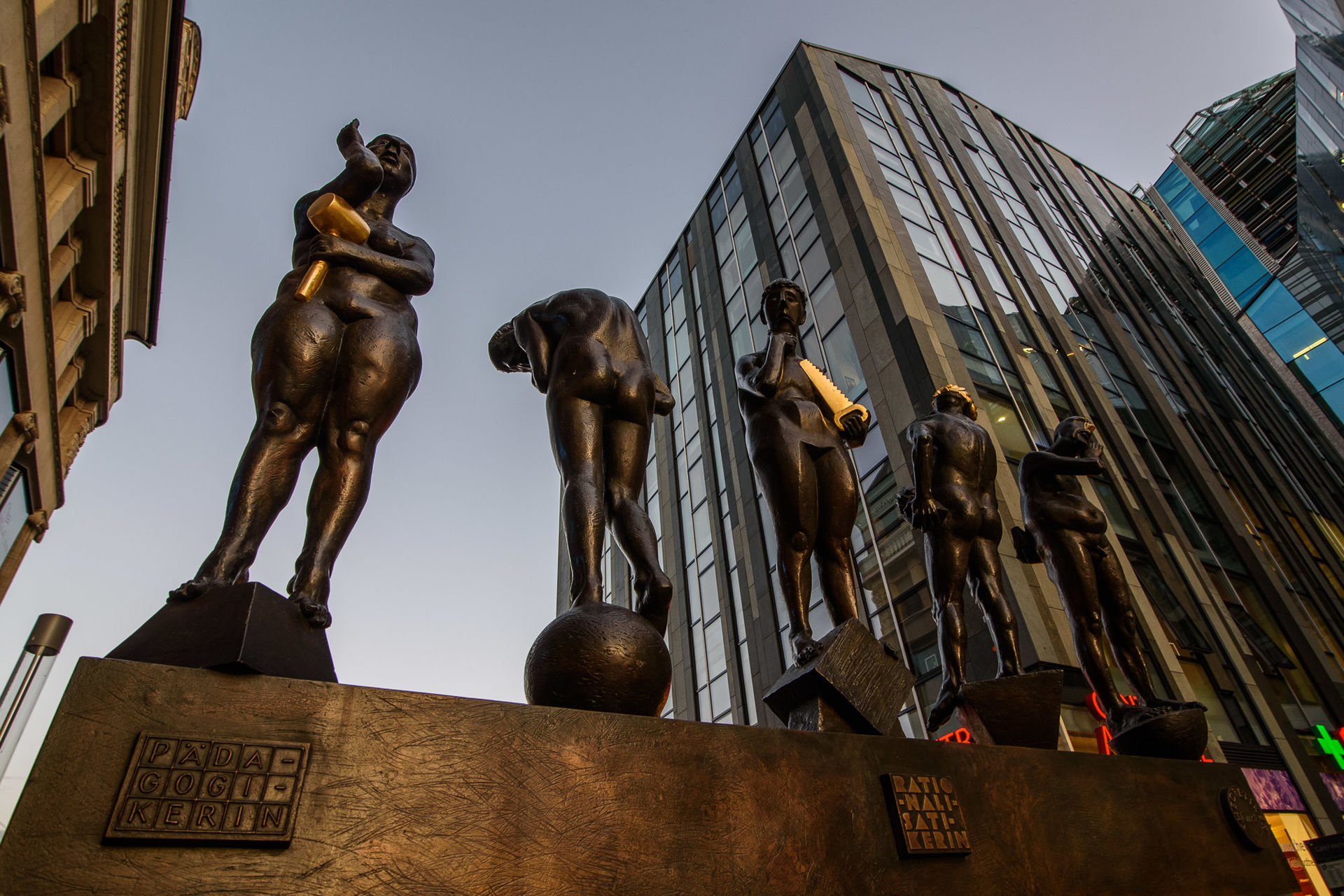 Una peculiar escultura en la zona peatonal del centro de Leipzig.