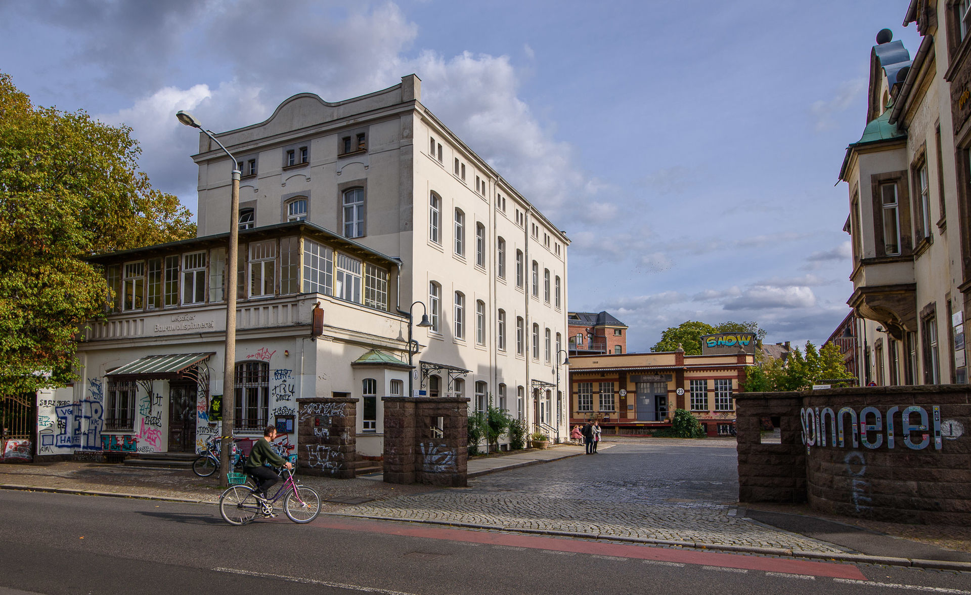 Entrada a la Spinerei, el enorme complejo cultural que ocupa las instalaciones de una antigua fábrica de hilo.