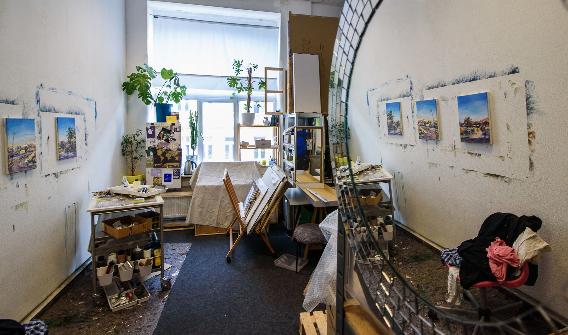 Uno de los pequeños estudios de un artista plástico, en este caso una pintora, que se pueden encontrar en la Spinerei de Leipzig.