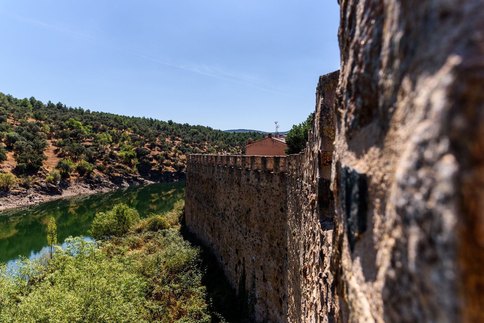 El río Lozoya protector natural del pueblo, con la muralla que se ha conservado hasta nuestros días. Su conjunto histórico y monumental fue reconocido en 1993 y decalarado Bien de Interés Cultural el casco antiguo de la Villa de Butrago del Lozoya.