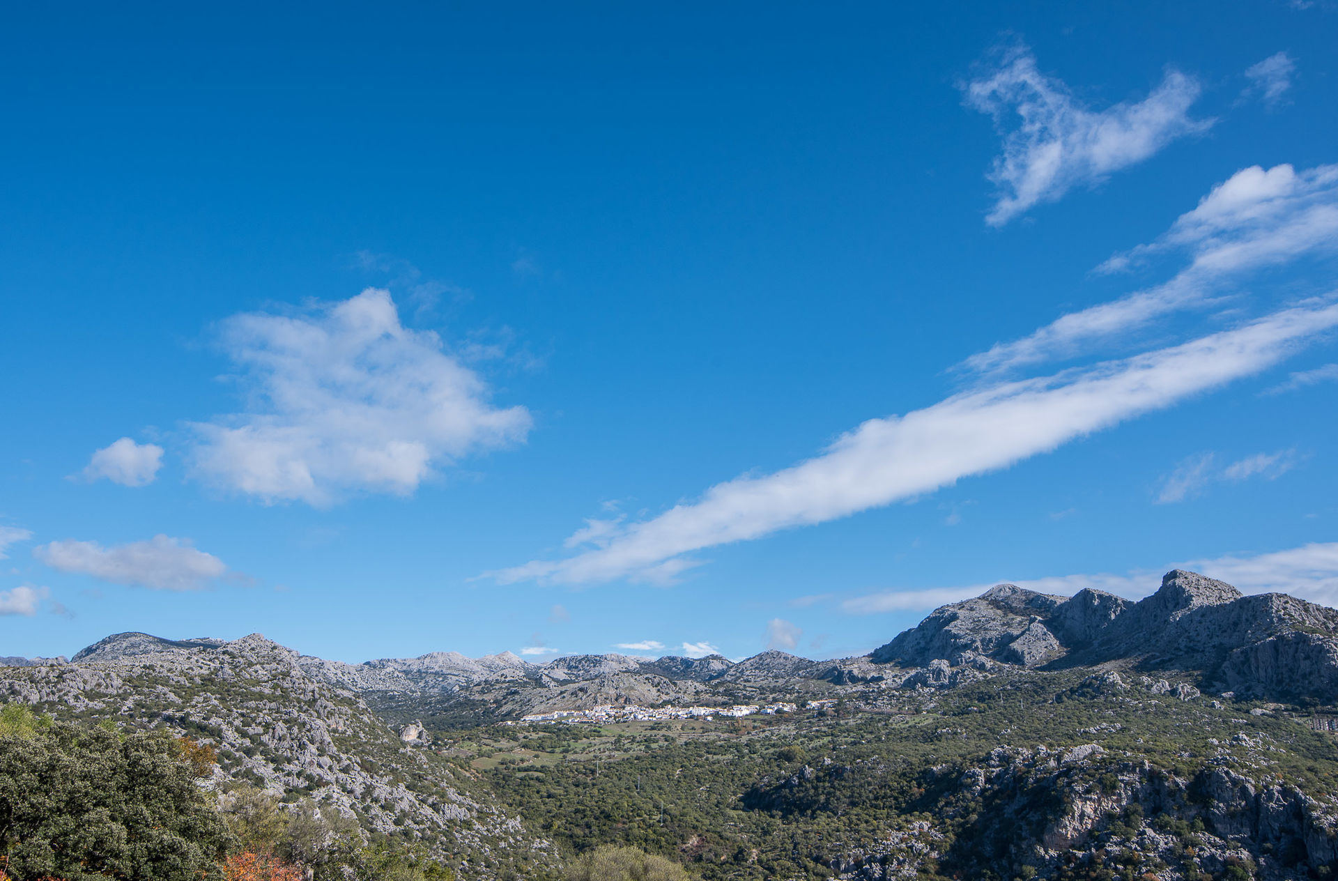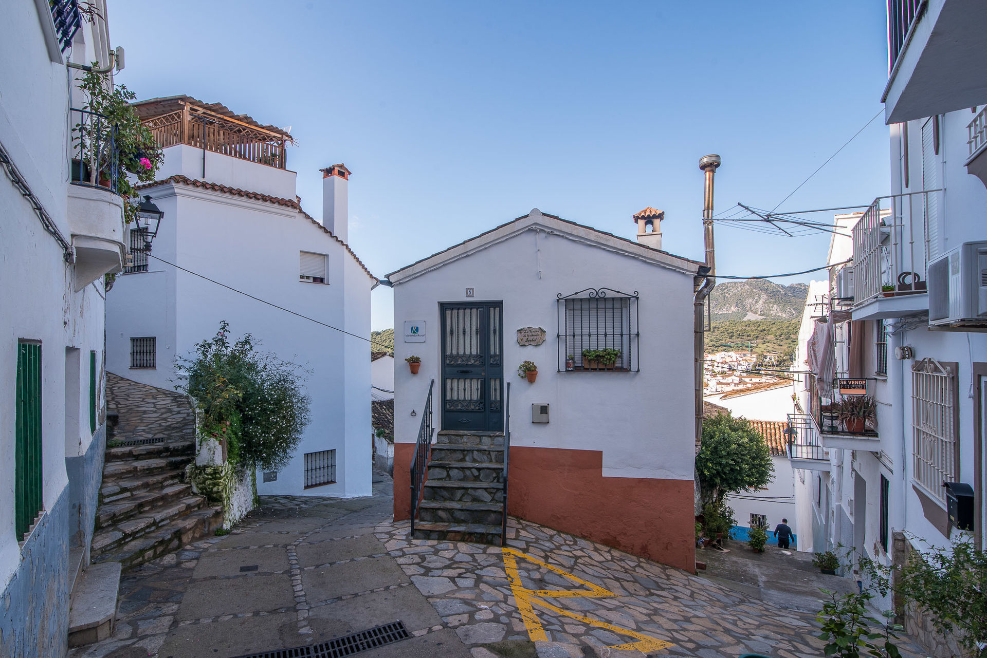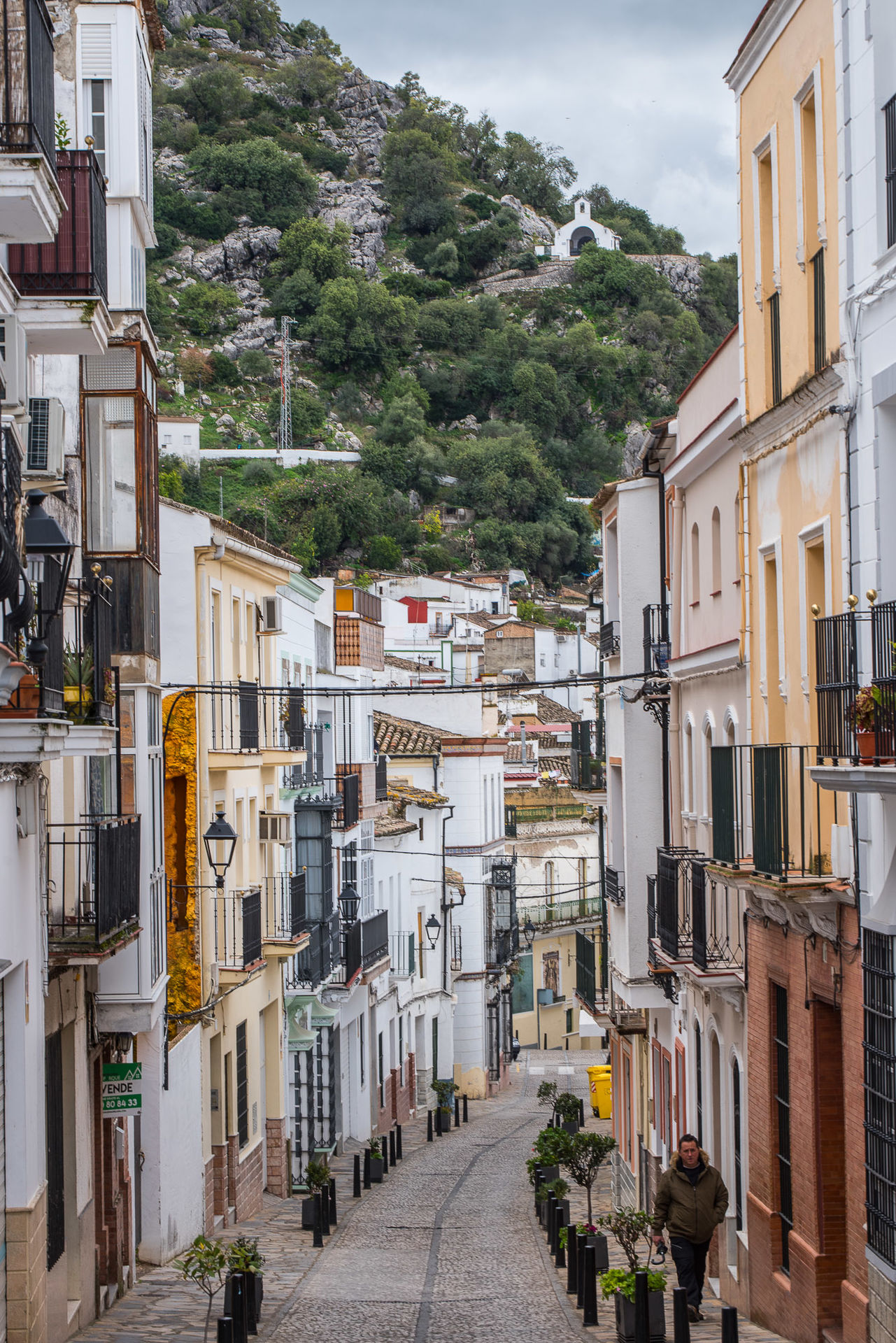 Una de las calles por las que se suebe a la parte vieja y en la que se ve como la montaña al fondo es una presencia constante en Ubrique.