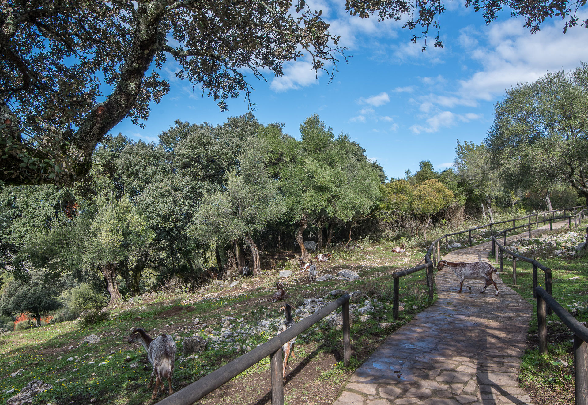 Unas cabras pastan tranquilamente en el sendero que lleva al yacimiento romano de Ocurris.