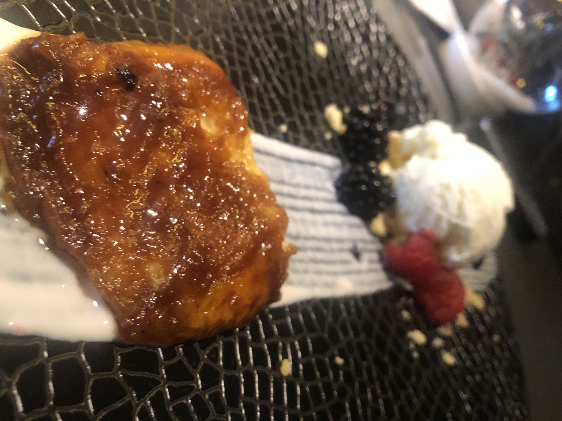 Cococha de merluza 'al pil-pil' ahumado de miso, emulsión de ajo negro japonés y chips de ajo.